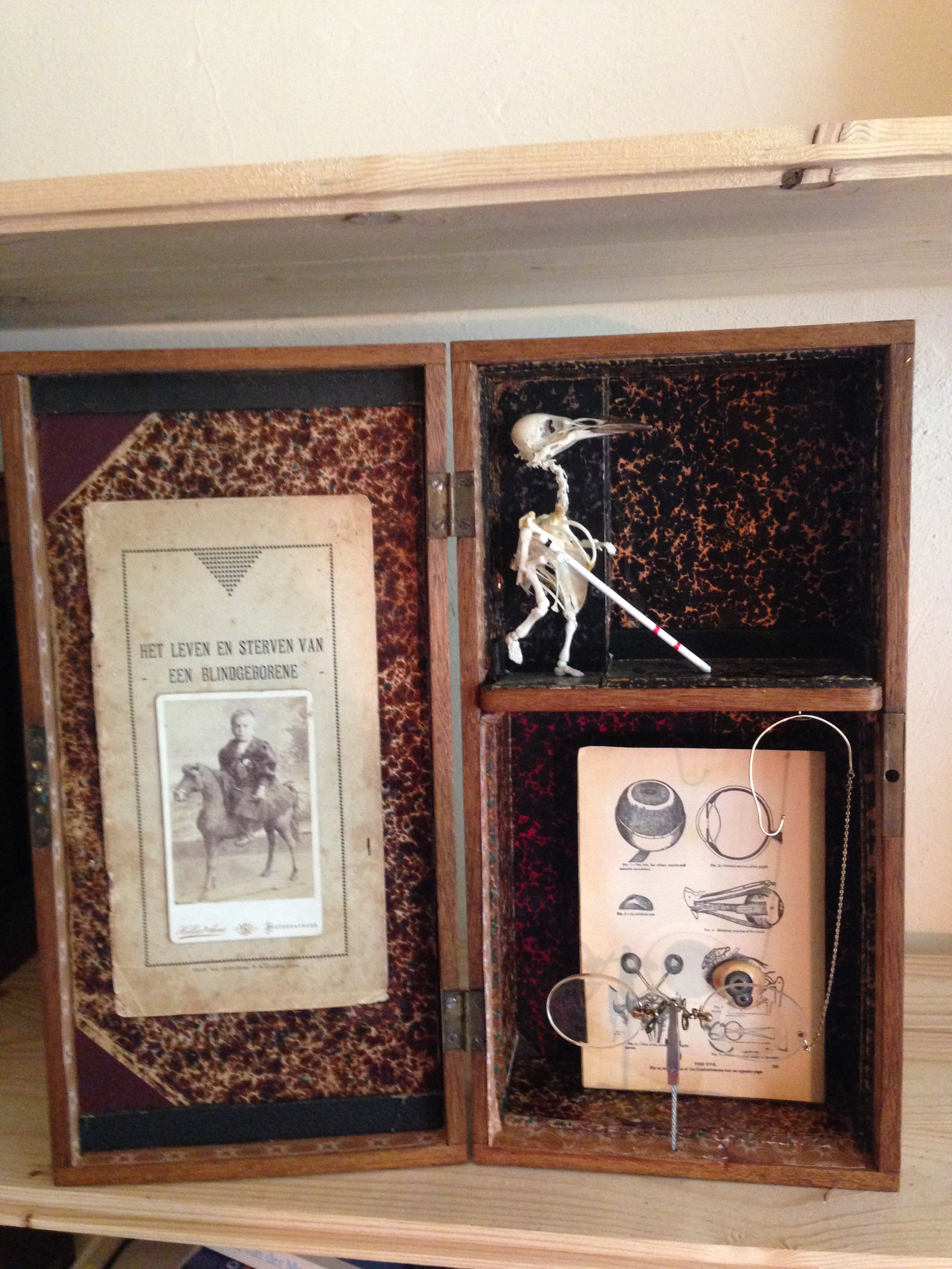 Er is schoonheid in vergankelijkheid, maar niet in het vergaan van schoonheid. Dit is het devies van mijn kunst. Een deel van mijn materialen komen uit de natuur, een ander deel is afkomstig van rommelmarkten. Ik ben veel in de natuur, waar ik verse dode vogels, insecten en plantaardige materialen verzamel. Ik prepareer ze en voorkom zo dat mooie vogels en insecten vergaan en verdwijnen. Ook krijg ik veel materialen aangeleverd door vrienden en familie. Ik maak nooit een dier dood. De huidige wereld vind ik leeg en kaal. Vandaar dat mijn kunstwerken vol zijn. Zo voel ik me hier toch een beetje thuis.