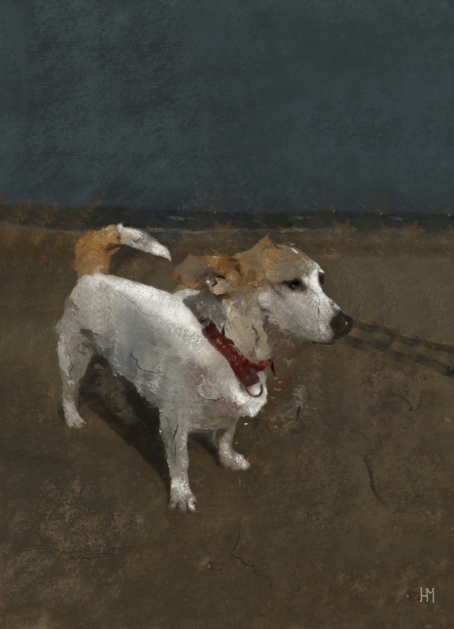 Amy is één van onze honden, hondje eigenlijk. Enkelhoog, maar pittig :-), een eigen willetje. En schandelijk verwend natuurlijk. Dit schilderij is geinspireerd op een foto die ik maakte op het strand in Callandsoog. Een prachtige dag met veel zon in het voorjaar, heerlijk een paar dagen over het strand gewandeld. Ik maak schilderijen van objecten en dieren uit het dagelijks leven, licht is eigenlijk wat me het meeste inspireert. Het origineel is verkocht, maar je kunt een prachtige art-print kopen op papier, canvas en 'heel mooi en modern' op dibond of aluminium. Als je vragen hebt of je wilt een kleine aanpassing in de verhoudingen zodat het net op dat ene plekje past...., aarzel niet om me een mail te sturen.
