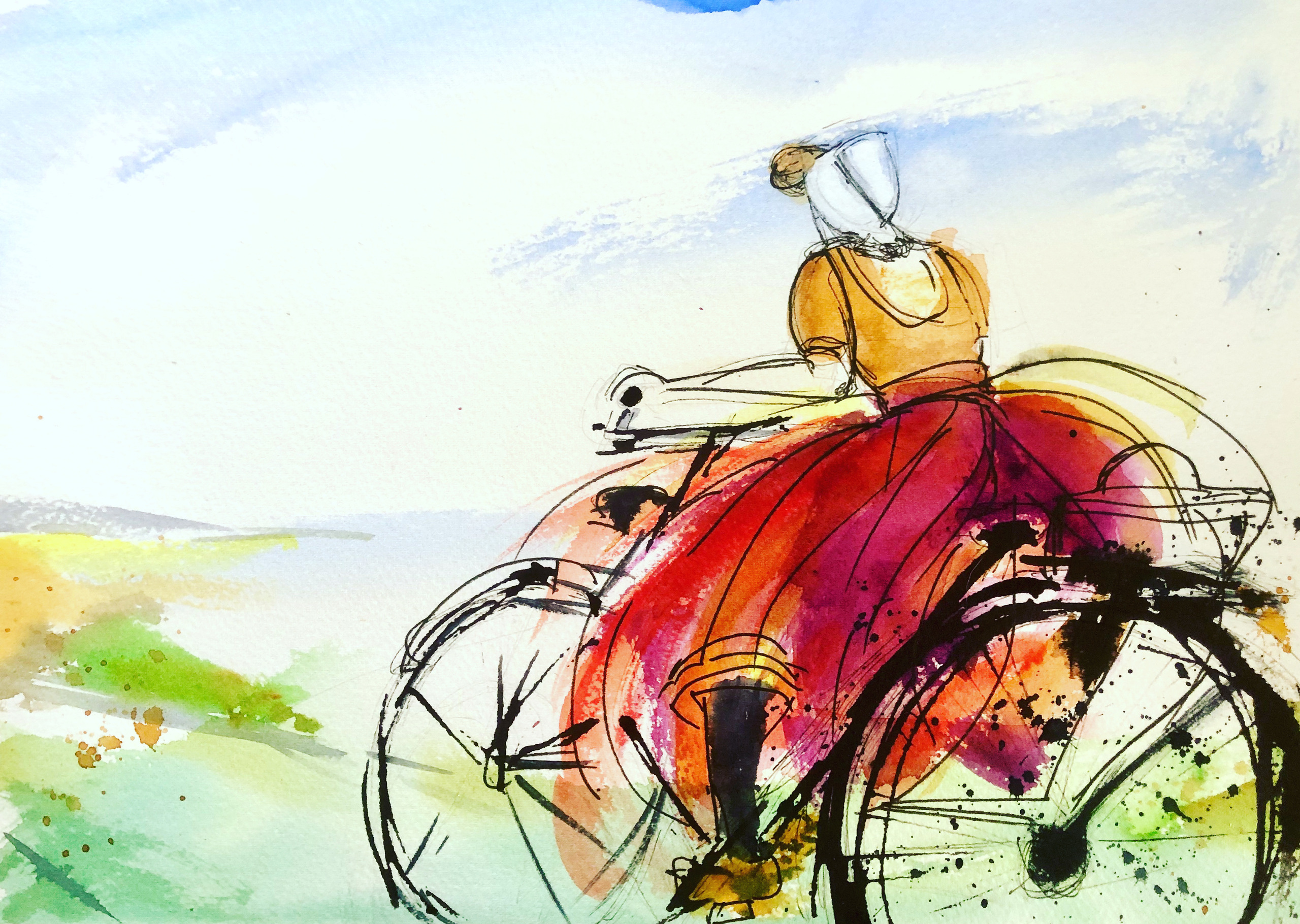 Aan de kust waait het altijd een verfrissend windje. Aquarel op 300 grams papier.