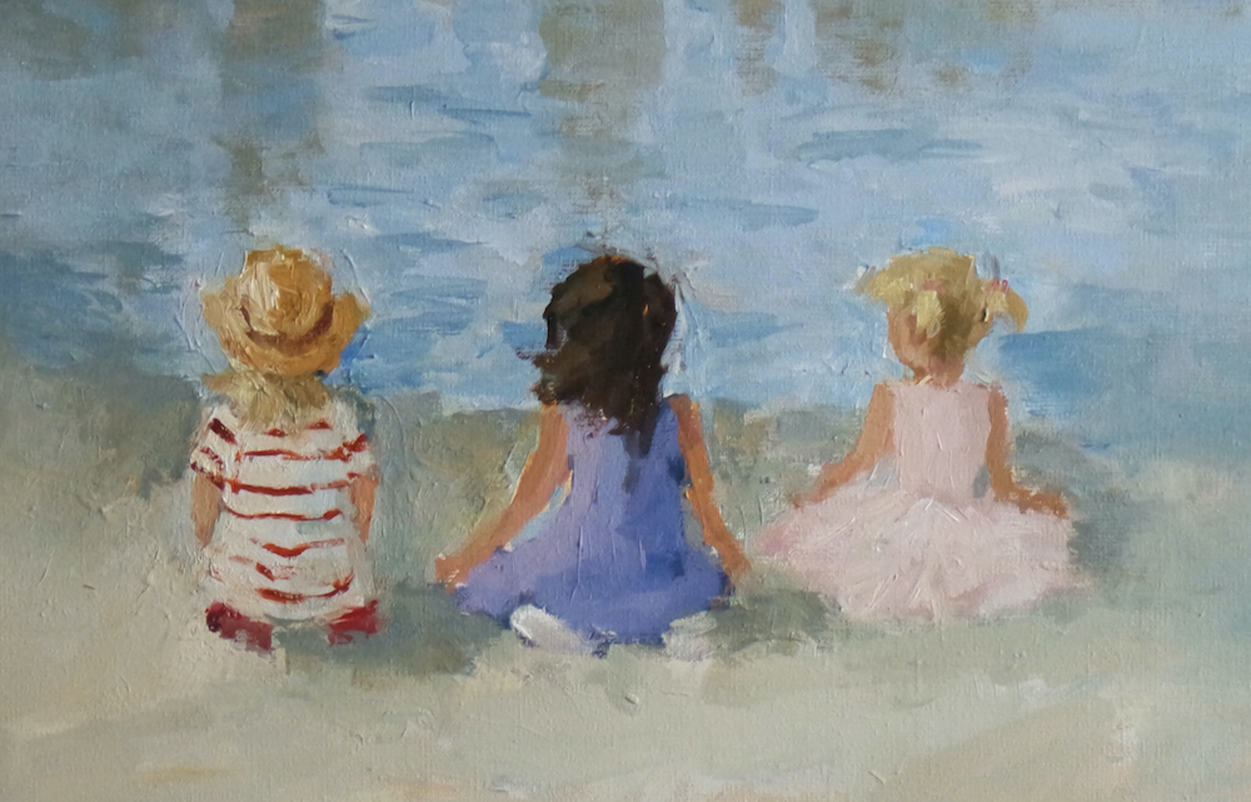 Deze drie meisjes heb ik geschetst toen ik drie weken in New York was. Ze keken uit over de East River en zaten gezellig te babbelen. Ze hadden feestjurkjes aan want er was een bruiloft. E