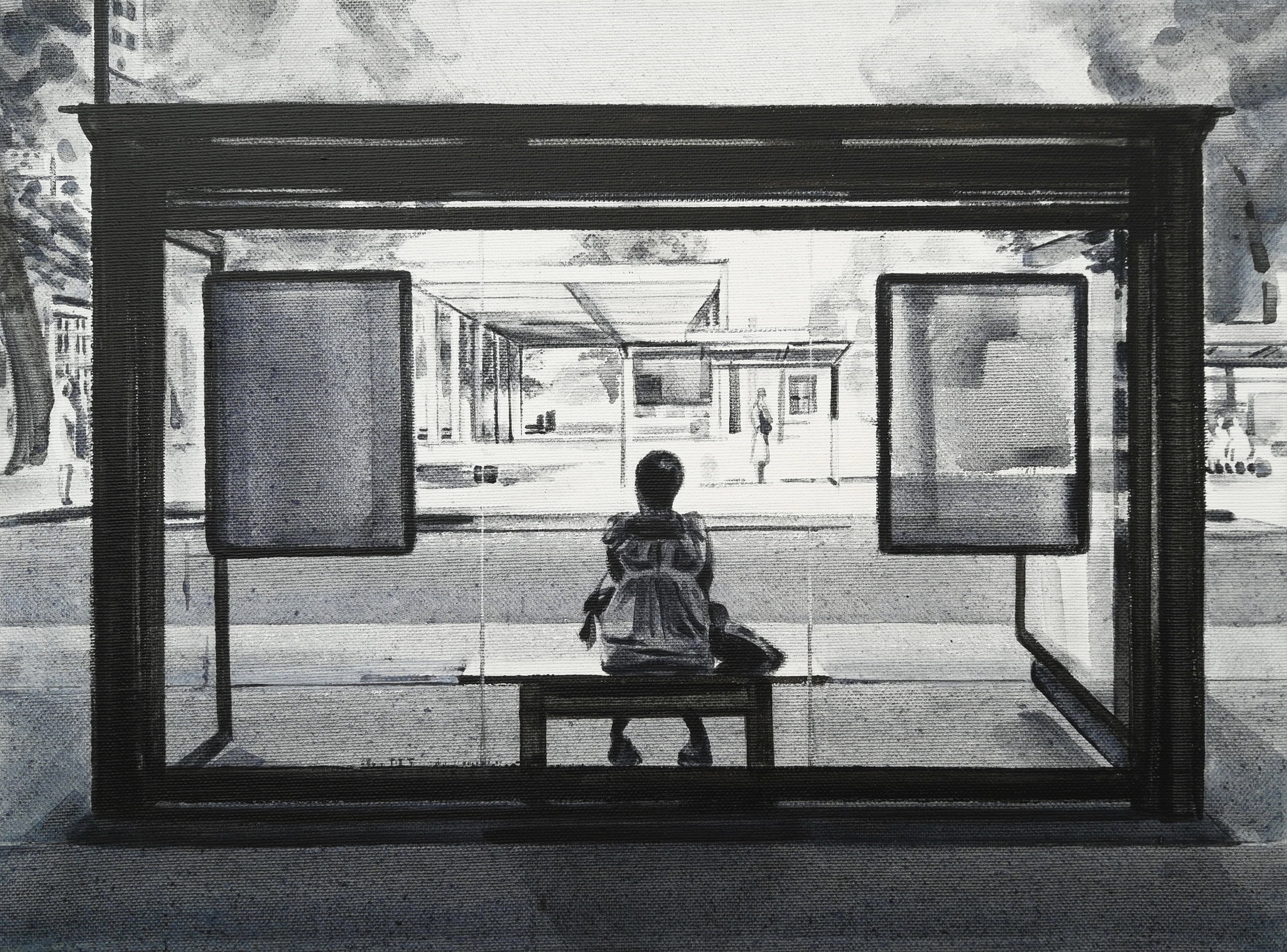 Acryl Acrylic Zomer Zwartwit Plein Blackandwhite Bushalte Hitte Busstop Bushokje
