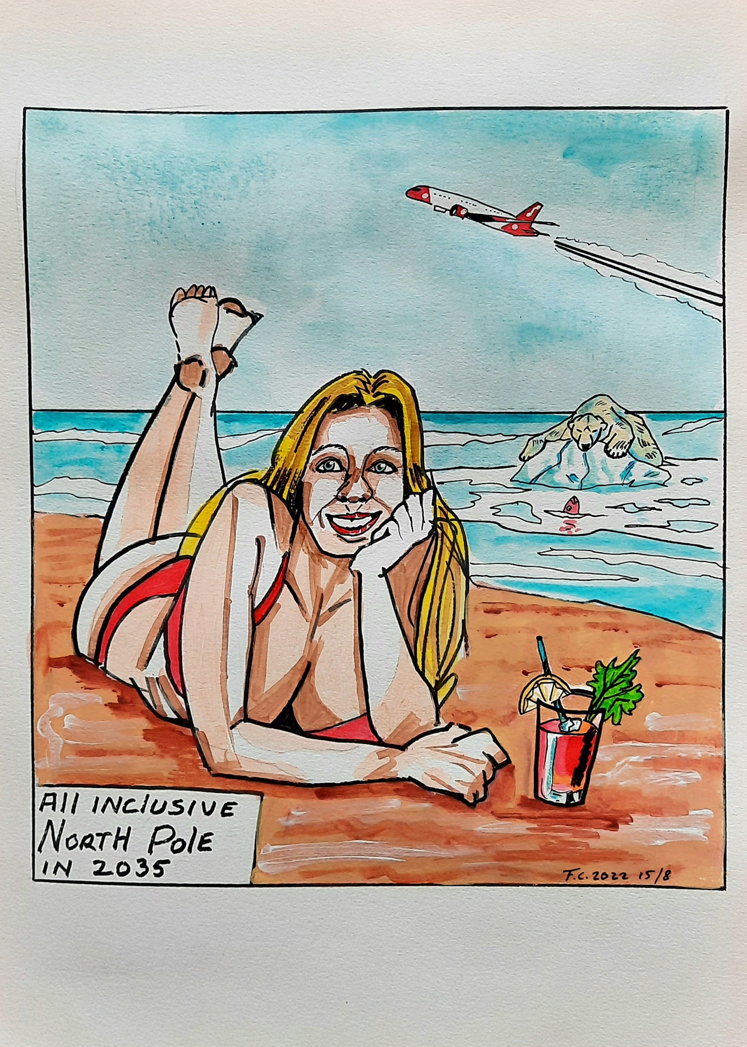 Misschien Cocktail Mixedmedia Toekomst Ijsbeer Popart Noordpool Strandvakantie