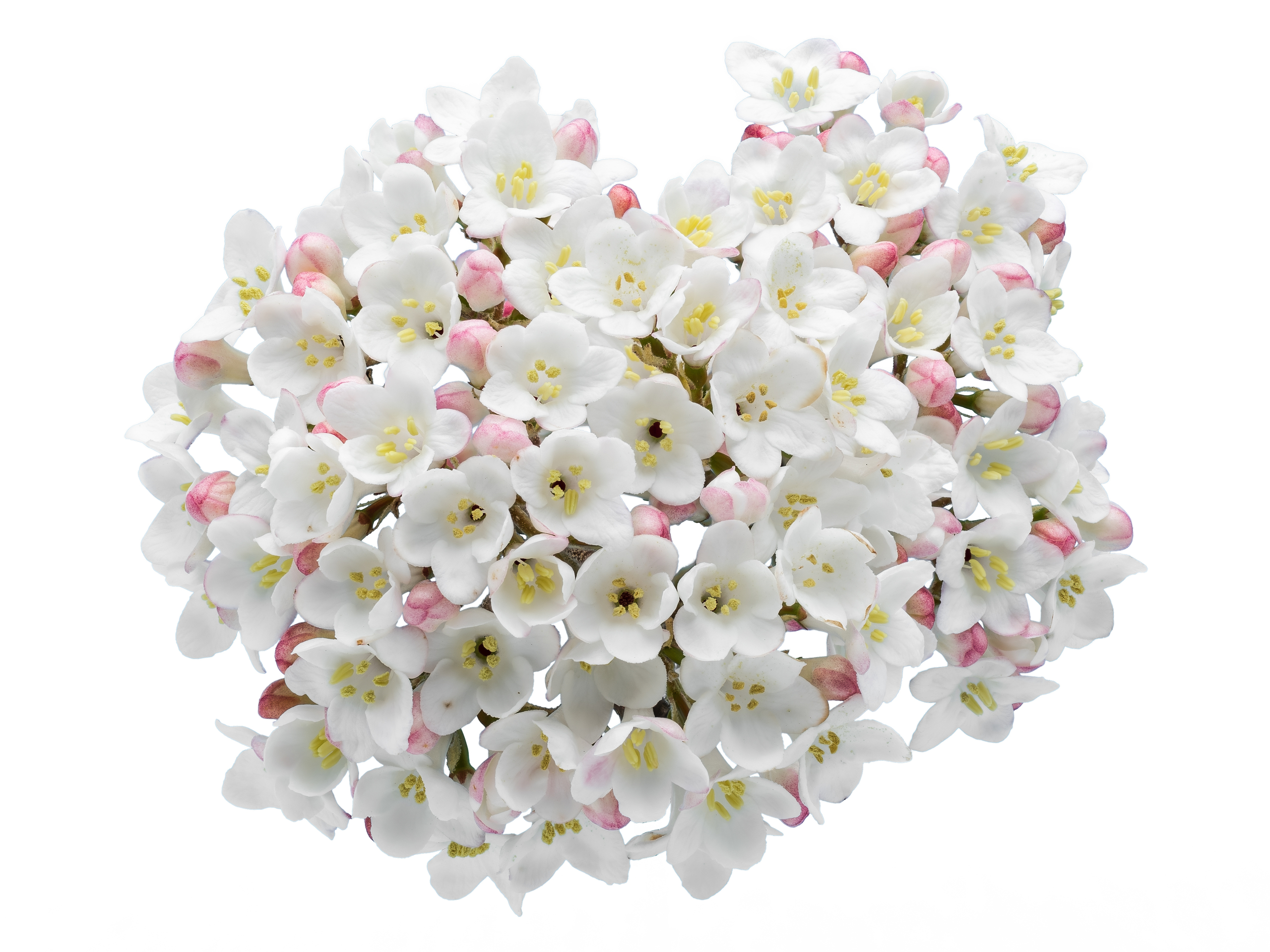Focus-stack van een Viburnum tegen een witte achtergrond.