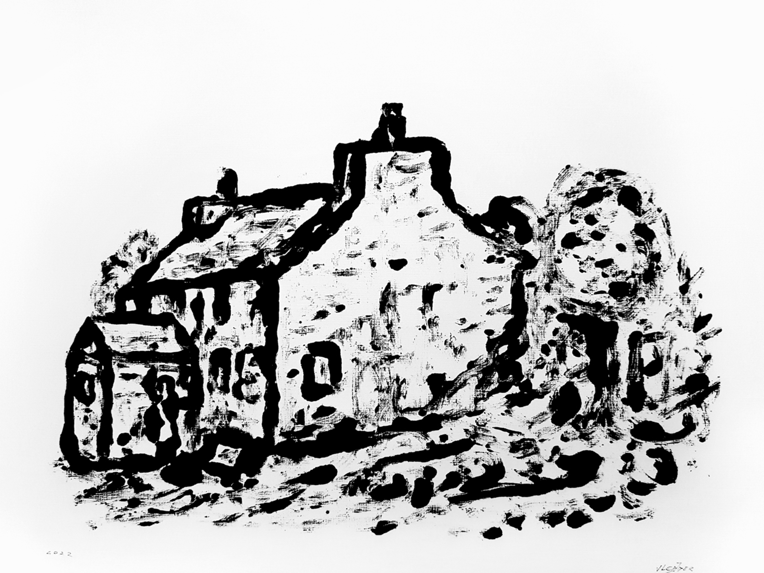 Kleinhuis Huis Natuur Rust Bomen Planten Zwartwit Grafiekkunst Kunst Grafiek Landschap Monoprint Monotype Printmaking Printmaker Contemporaryart