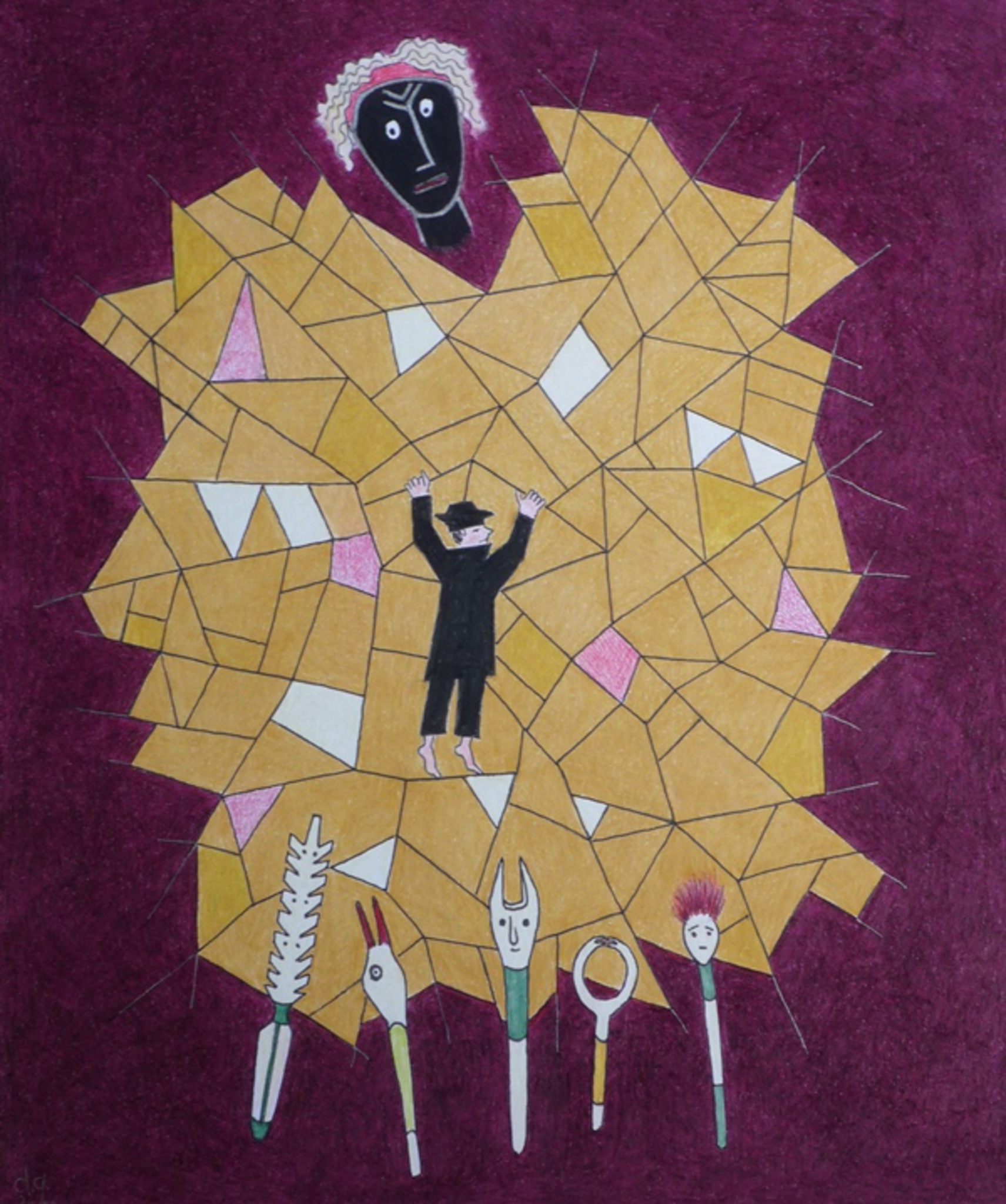 Wit Abstract Geel Oker Man Geest Figuren Attributen Aubergine