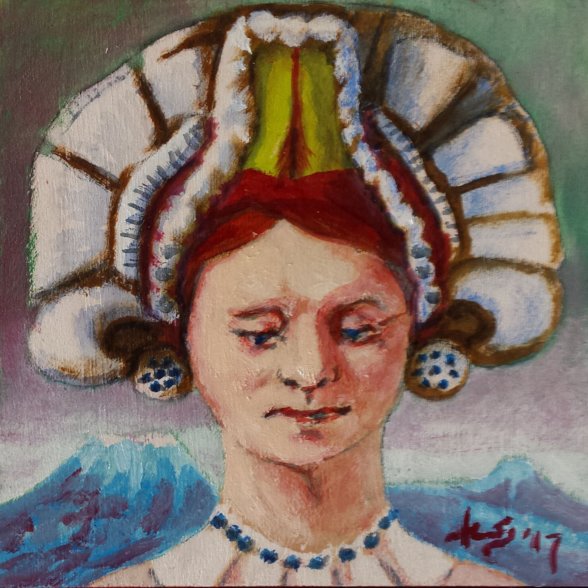 Portret Olieverf Paneel Mexicaans Kleinformaat