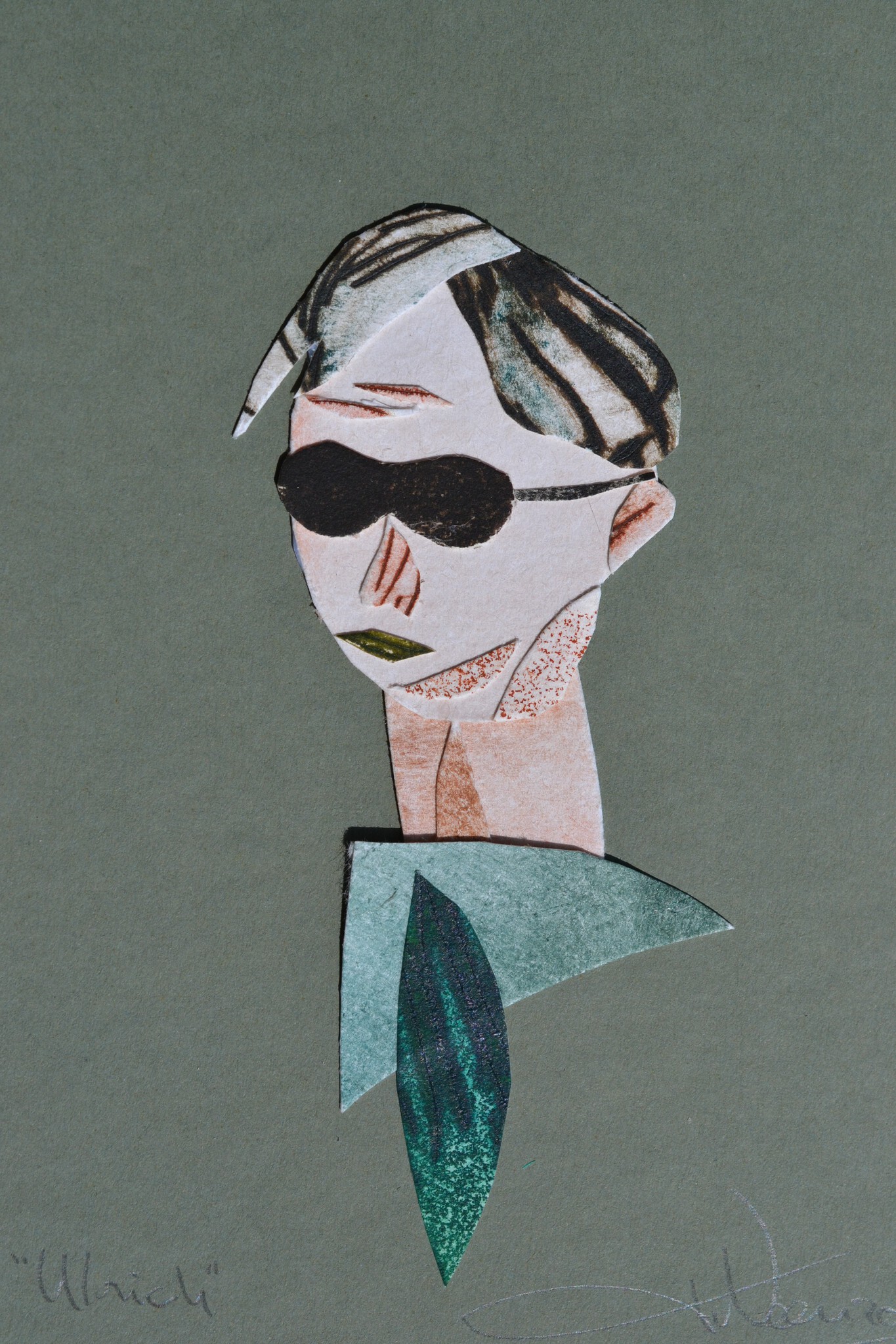 Ulrich - collage van verknipte drukken van mijn vroegere etsen - collage réalisé avec mes anciens gravures découpées - collage made from my earlier prints - edition 1/1 - in passepartout 18 x 13 cm.