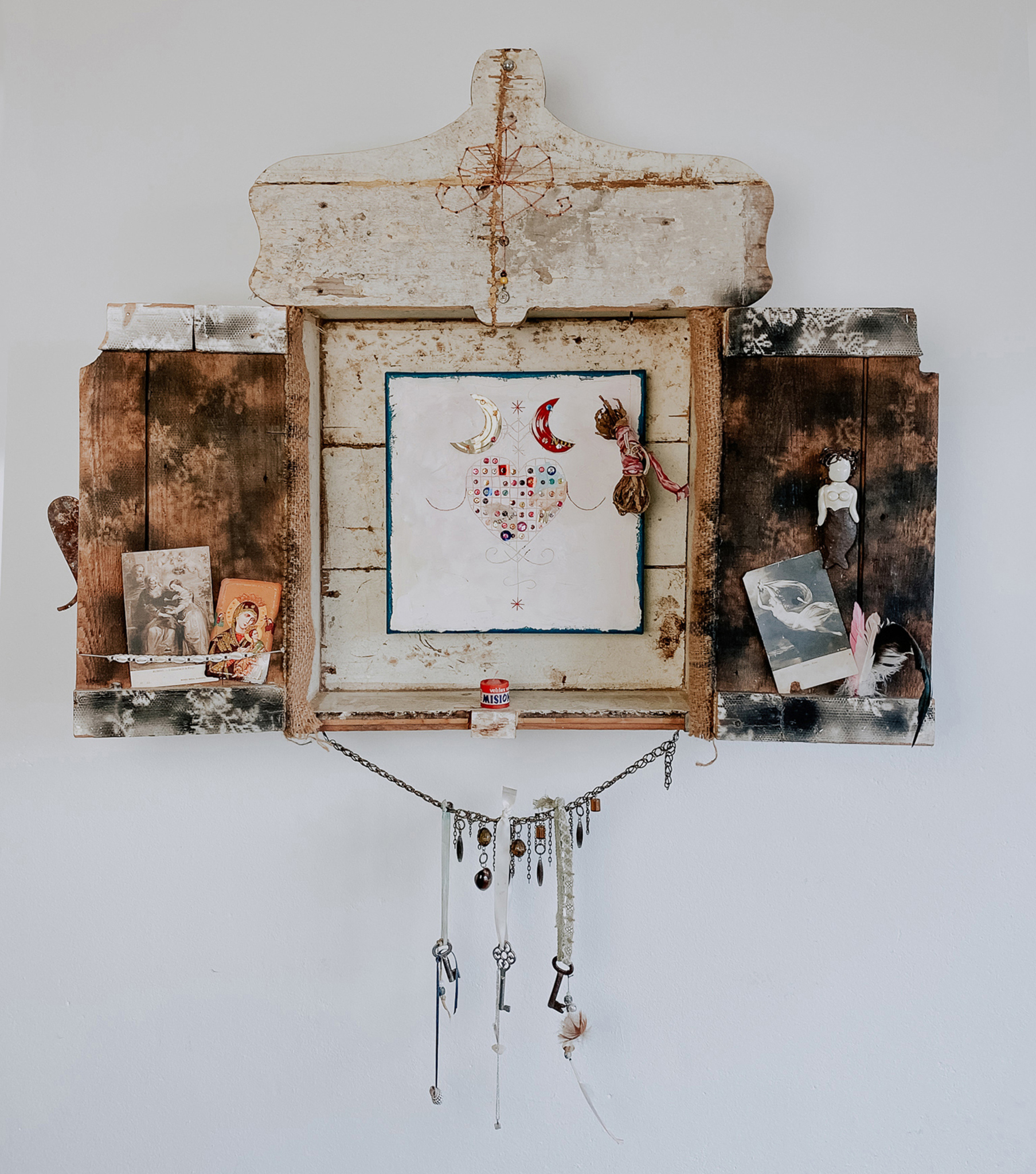 Huis Spiritueel Religieus Assemblage Sculptuur Home Bohemian Altar Altaar Embroidery Borduurkunst Eclectisch Voudou