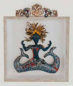 Godinnen, meerminnen met superpowers en home altars. Assemblage kunst, textiel en conceptueel werk door Ingeborg Vriends.