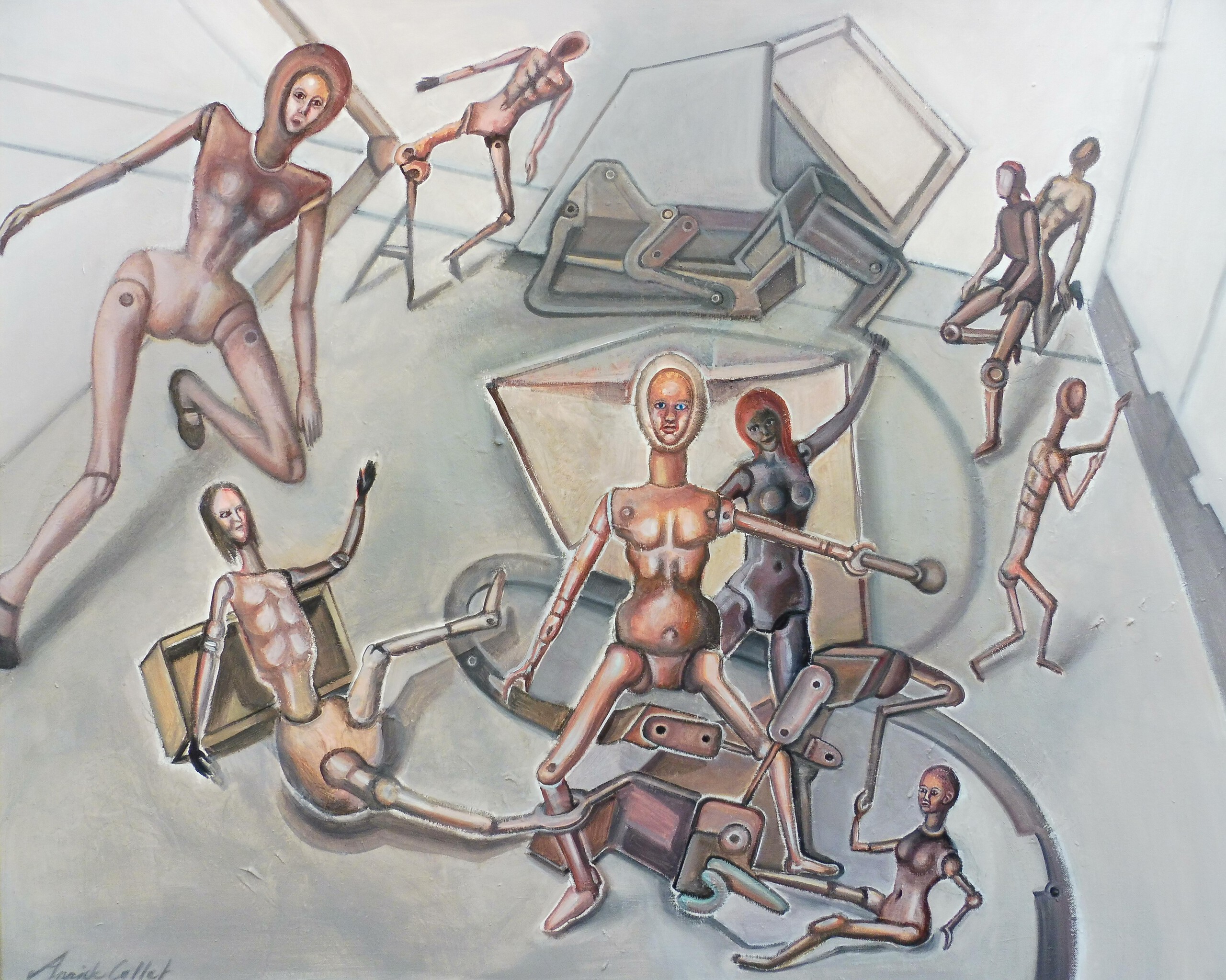 Schilderijen, tekeningen, beeldhouwwerken, collages, patchwork, poppen en meer beeldend werk van kunstenares Annick Collet