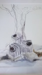Ik teken in kleur en de kleur is als een teken... en soms wordt het getekende uit zijn illusoire wereld gehaald om een een ruimtelijk object te worden.