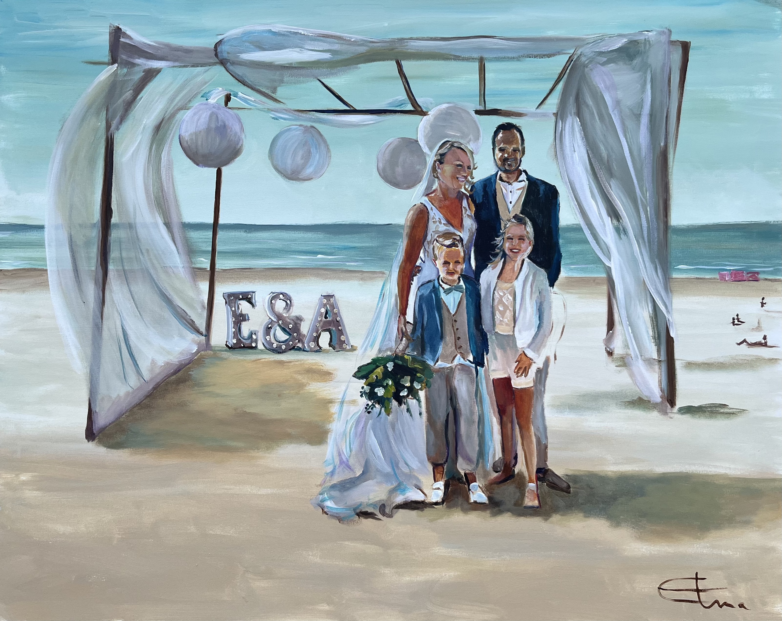 Schilderij Paint Gezin Bruiloft Live