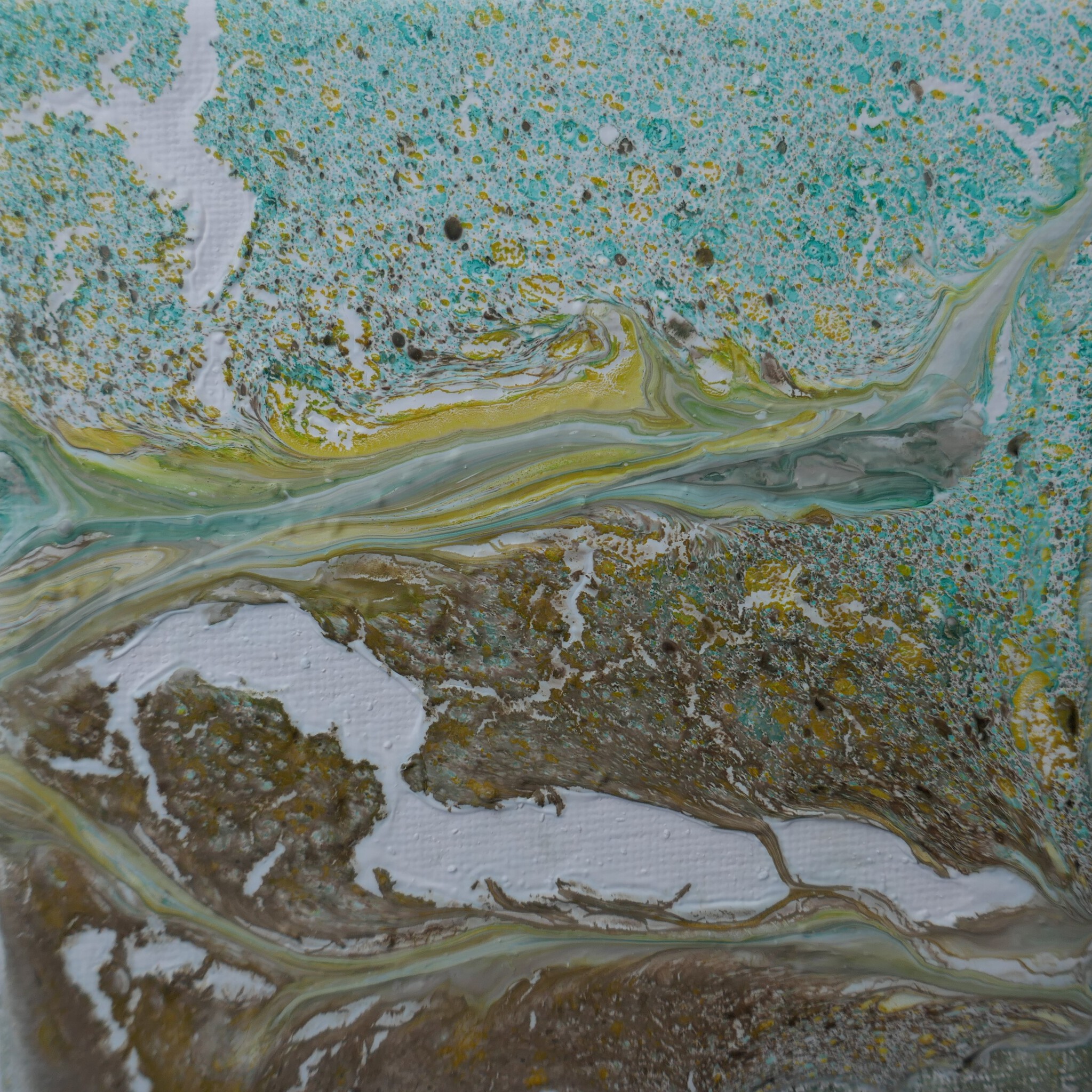 Als tweeluik te koop samen met 'moving earth, nr. 16'. Smeltende, vergroenende gletsjer door klimaatverandering.