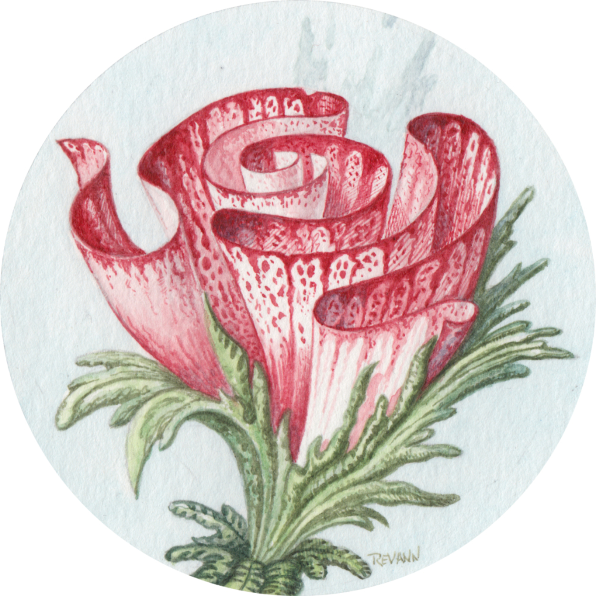 Eigen kweek. Aquarel 7 cm Ø. In passepartout 18x13 cm.