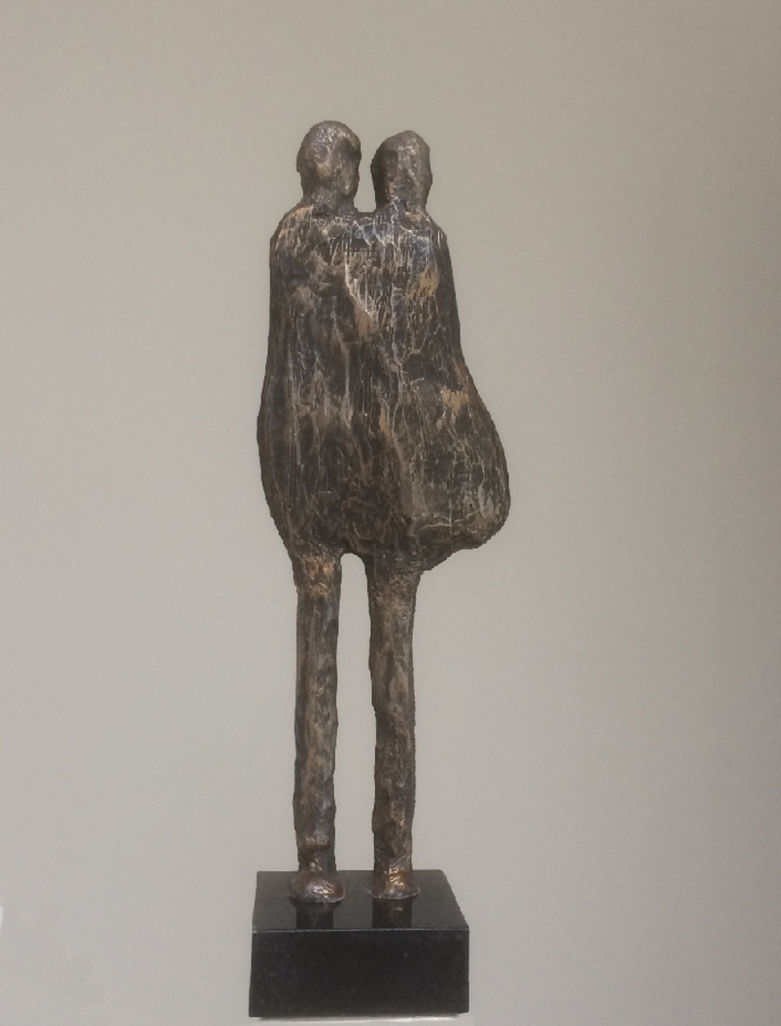 Handgevormd geabstraheerd beeld van man/vrouw gemaakt van kunsthars met glasweefsel op marmeren steentje.