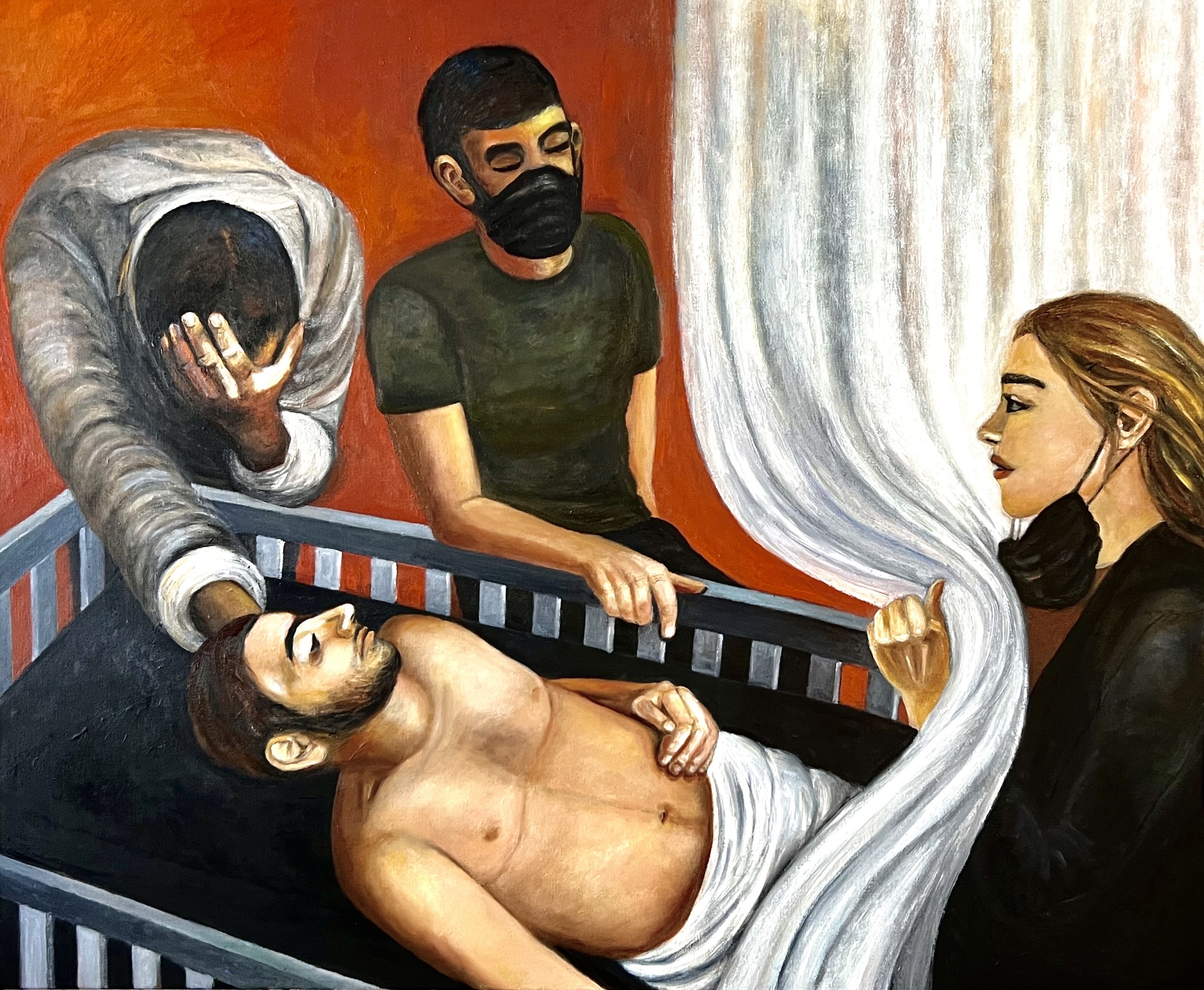 Schilderij Vrouw Man Olieverf Verdriet Corona Ziekenhuis Leed