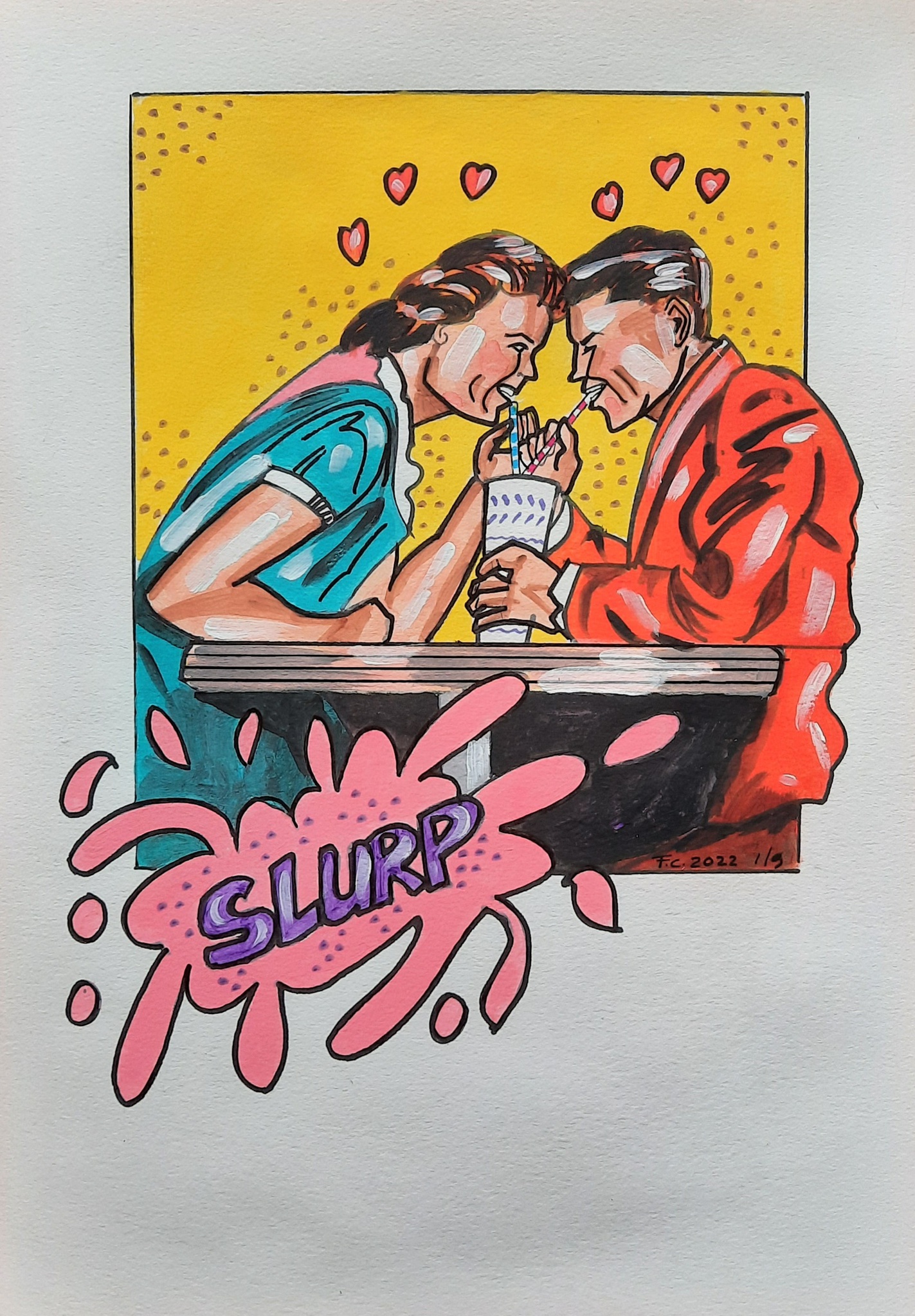 Plezier Mixedmedia Popart Amerikaans Lovers Milkshake 50s