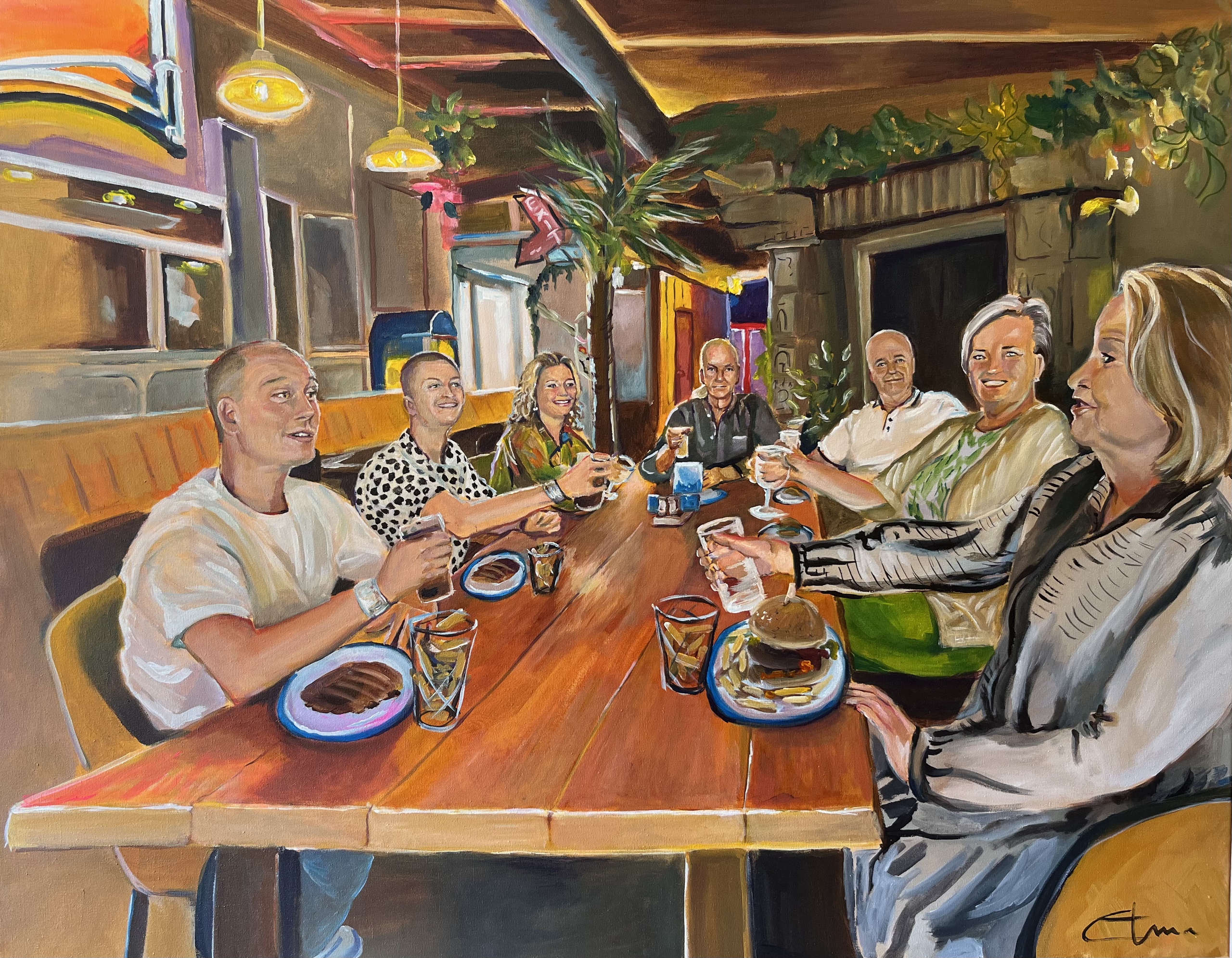Live tijdens het etentje op locatie begonnen, in mijn atelier verder afgemaakt.