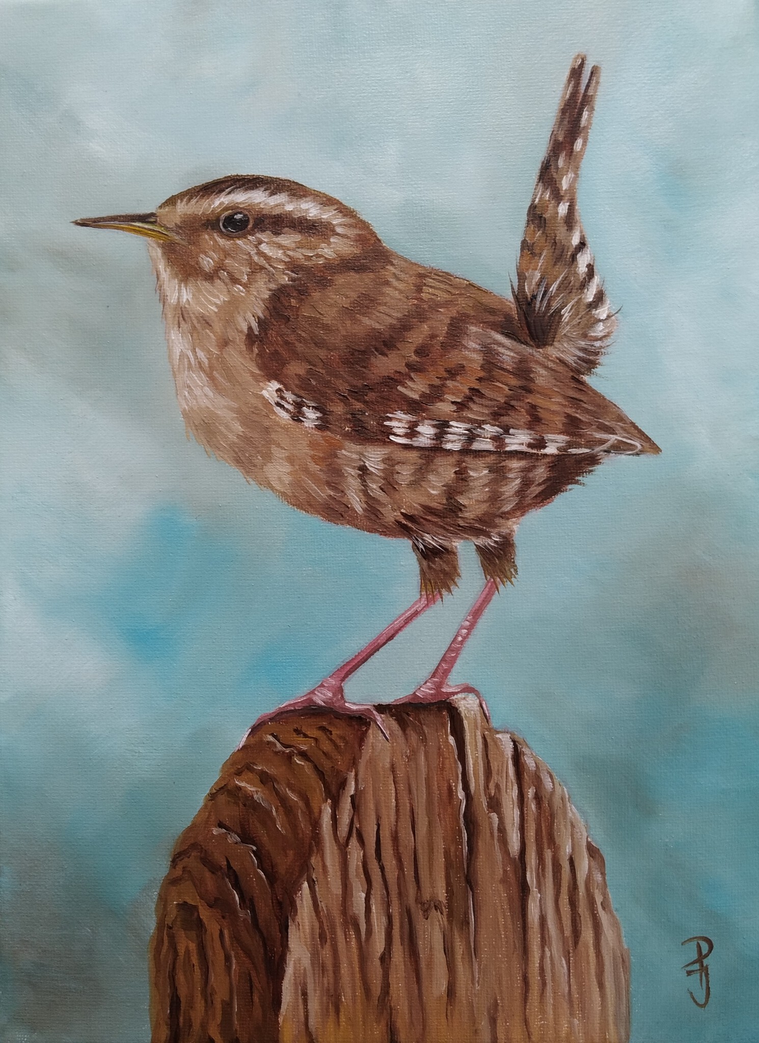 Schilderij Winterkoninkje Vogelschilderij