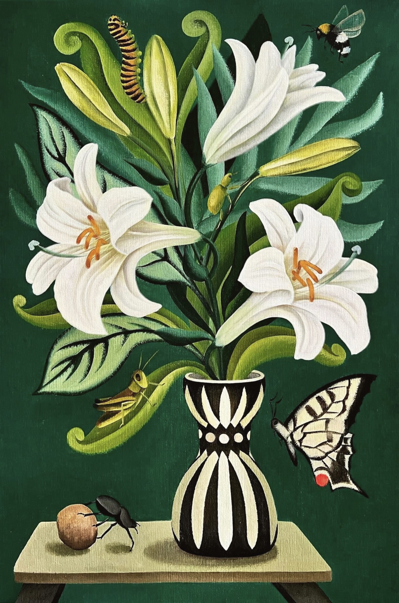 Yvonne Zomerdijk (1973) schilderijen en linosnedes.