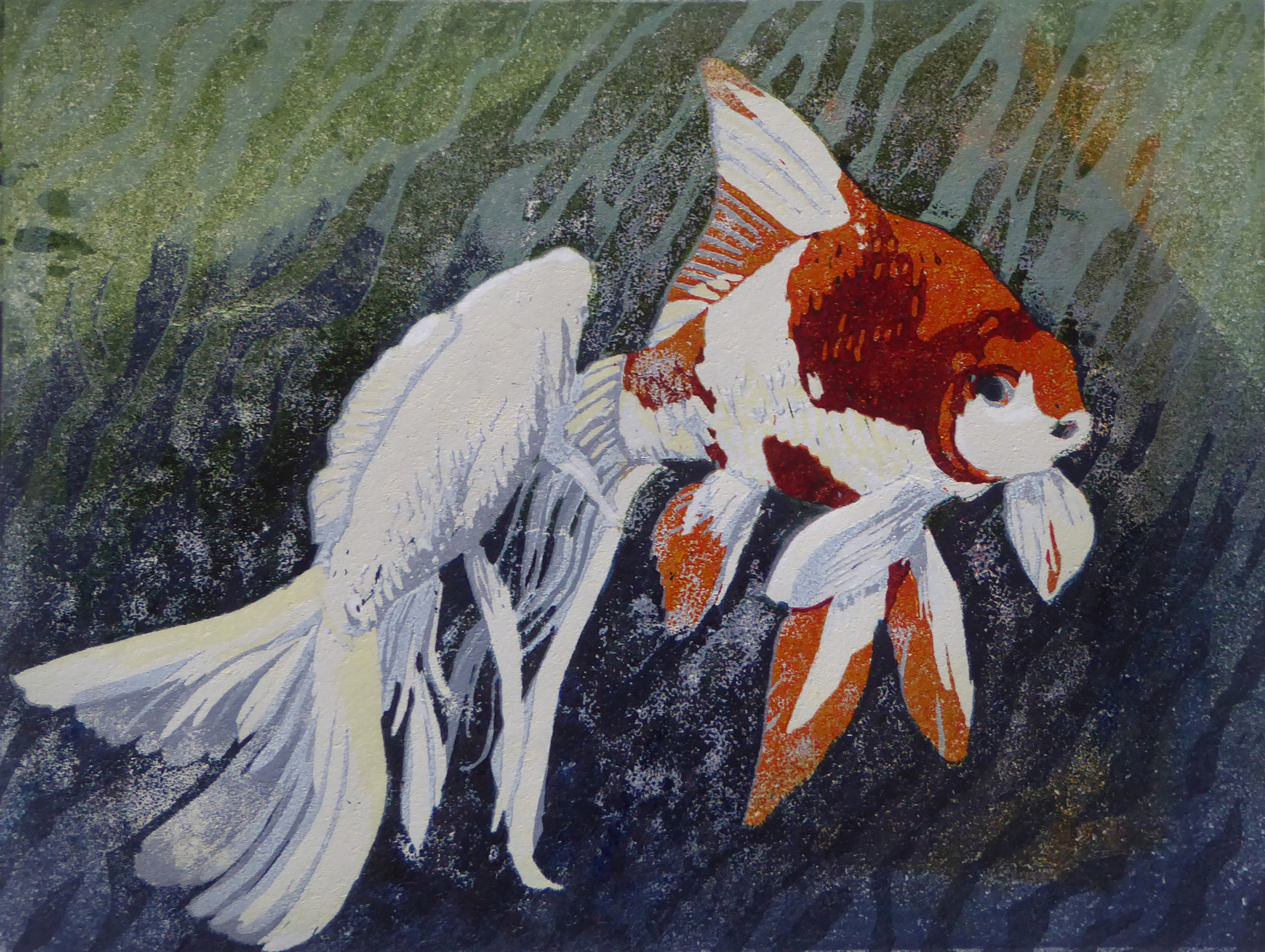 Papier Kleurrijk Grafiek Goudvissen Japans Linosnede