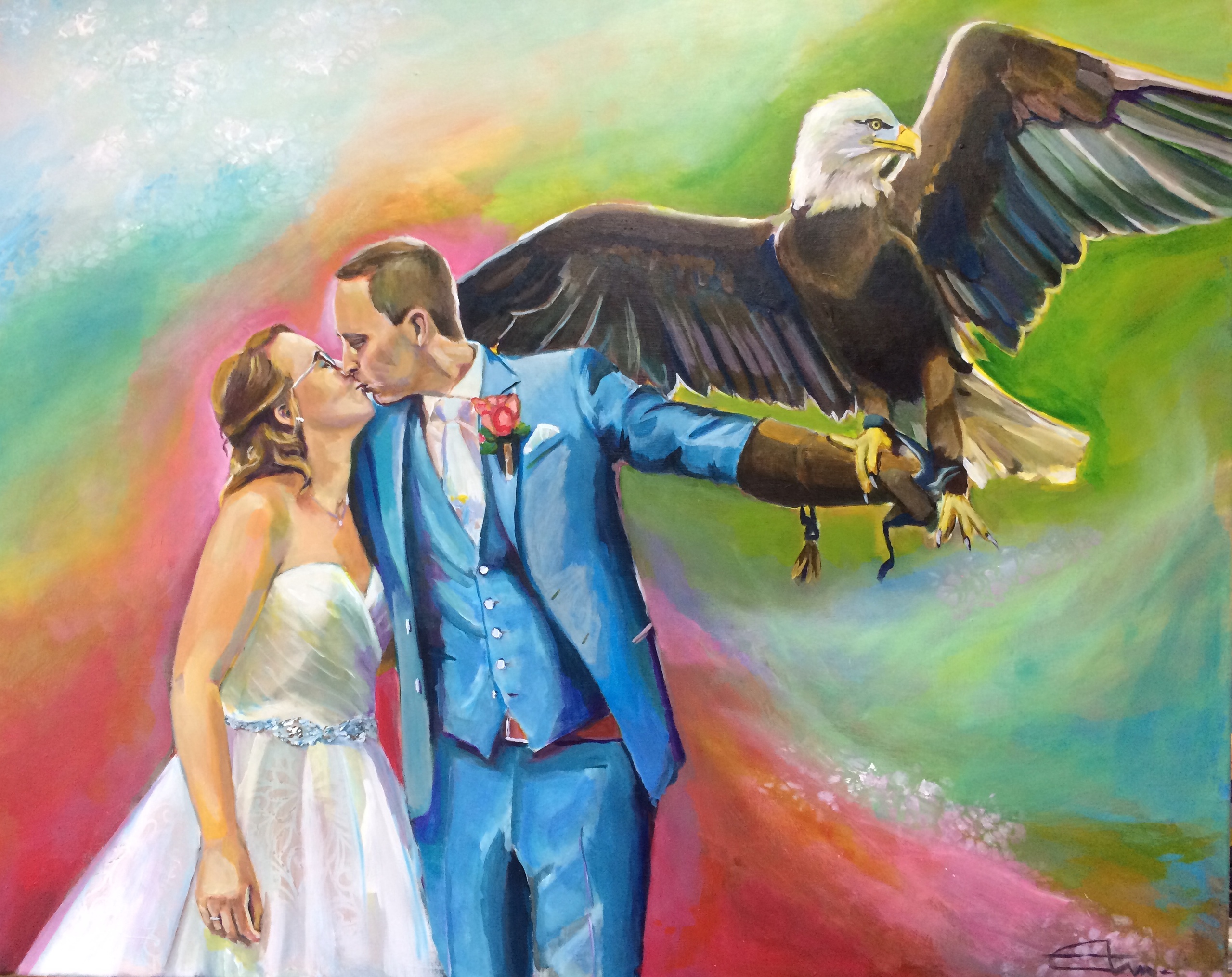 Bruidspaar Roofvogel Ringen Ceremonie Schilderij Verrassing Cadeau