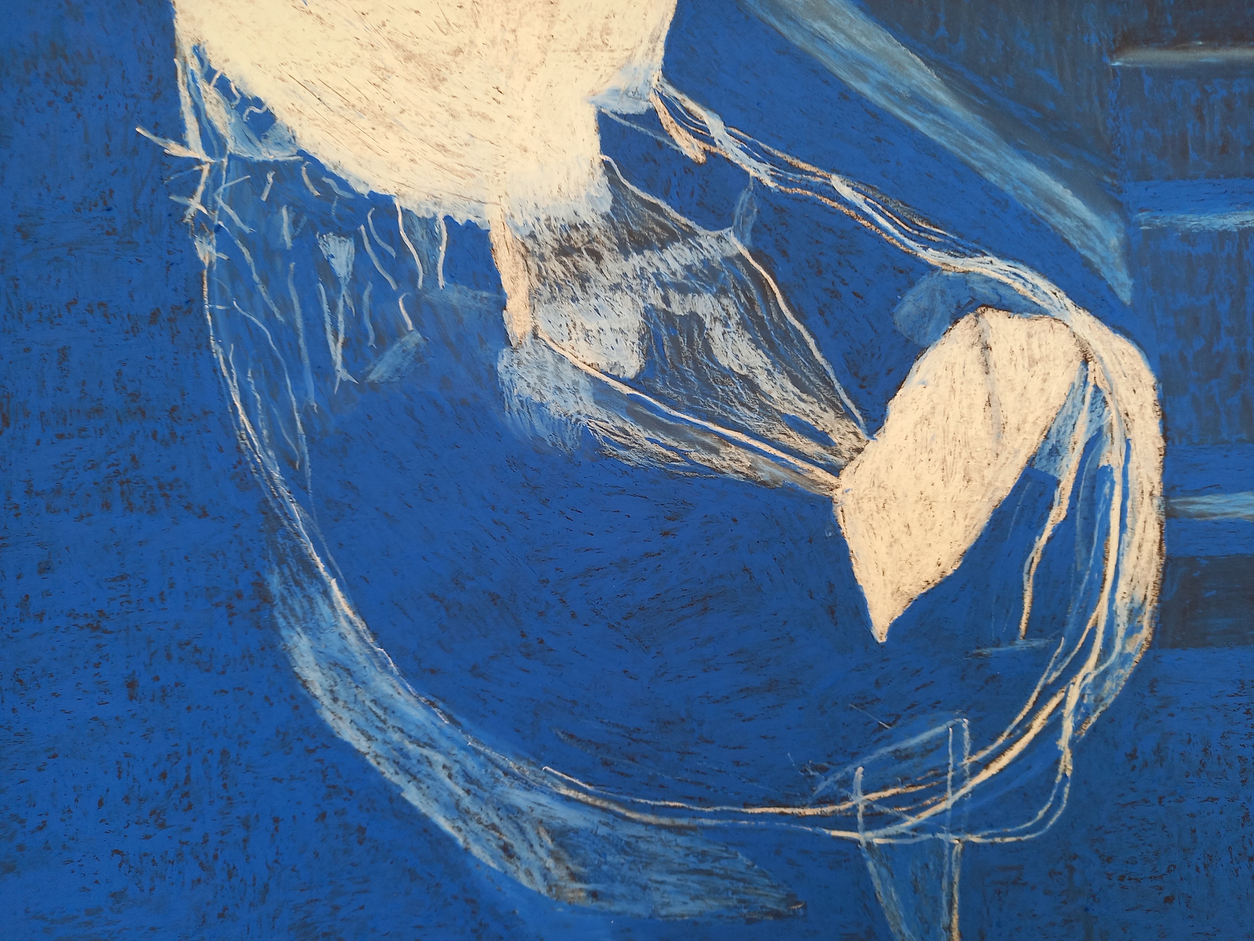 het menselijk lichaam, met een röntghenfoto van mijn maag als voorbeeld maakte ik deze tekening met oliepastels op zwart papier