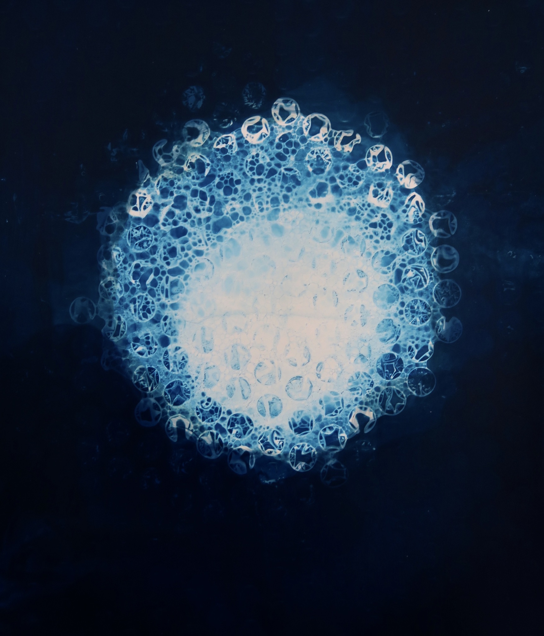 Wit Blauw Spiritueel Fotografie Eigen Hoofd Stilte Innerlijk Bubbel Blauwdruk Cyanotype Fotogram Emulsie