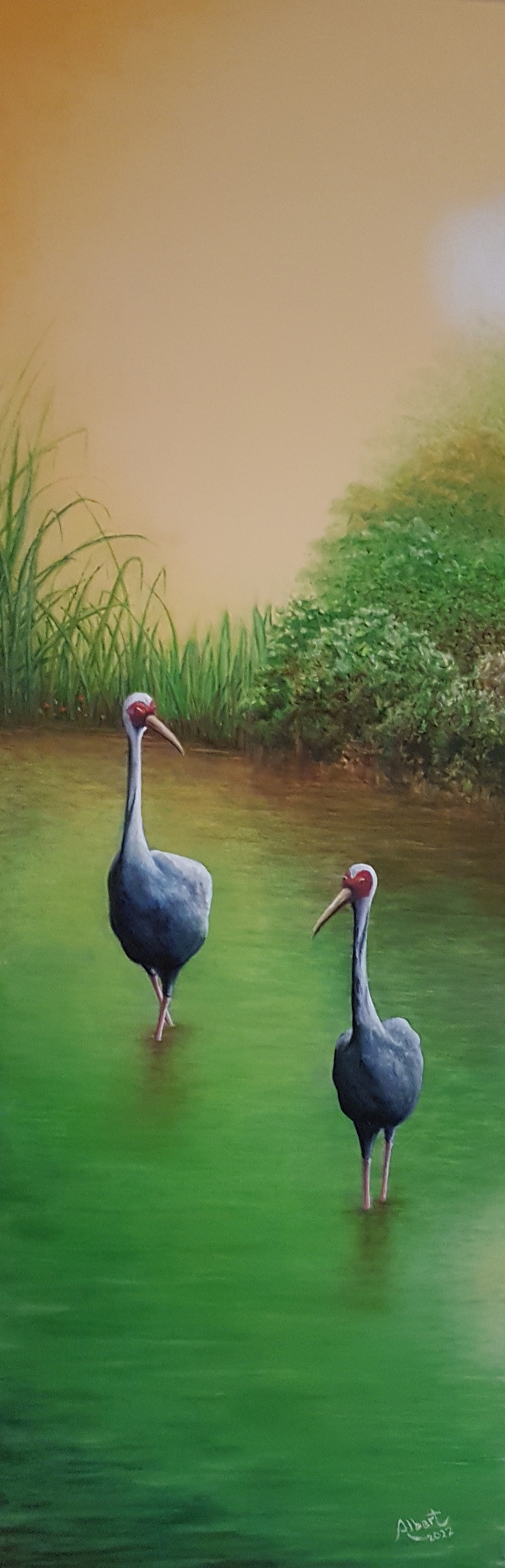 Schilderij Landschap Dieren Olieverf Kraanvogels