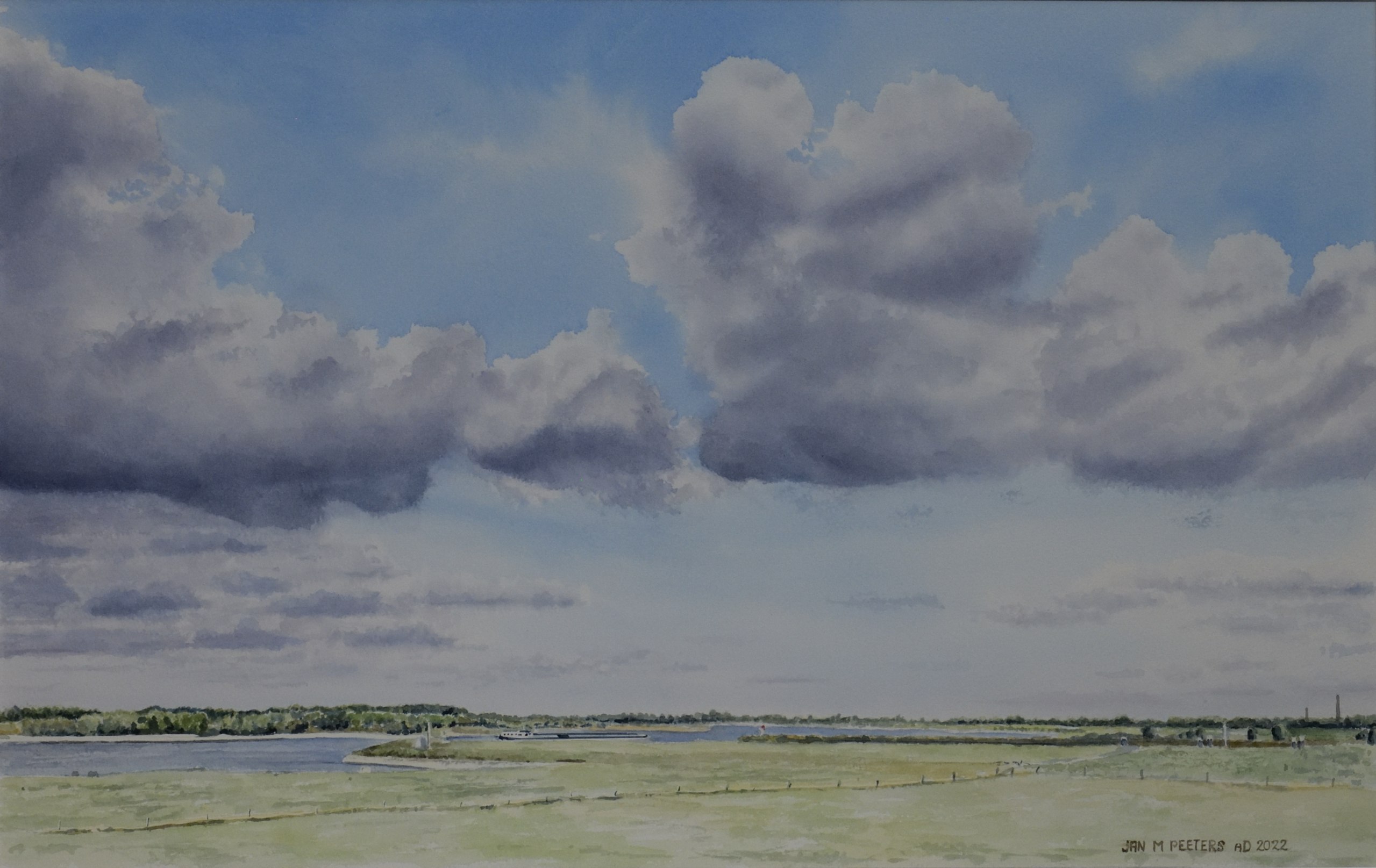 Boven de Waal bij het Gelderse Rossum kunnen zich van die prachtige wolkenluchten formeren.