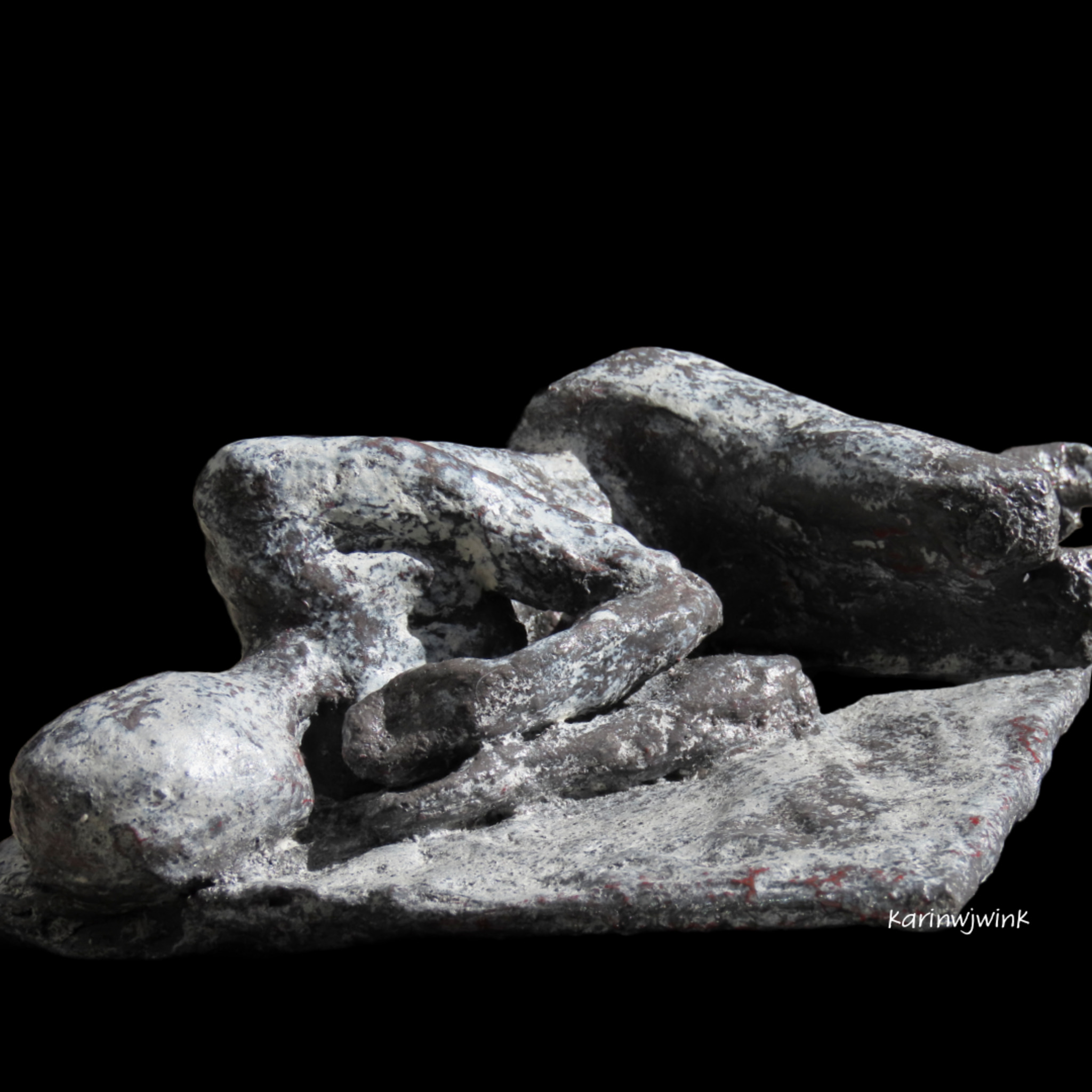 - NIET TE KOOP - Een beeld in klei afgewerkt met paverpol en artstone, inclusief mat zwarte houten (onder)plaat. Een beeld geinspireerd door het schilderij "Lost". Een beeld over je verloren voelen en alleen....