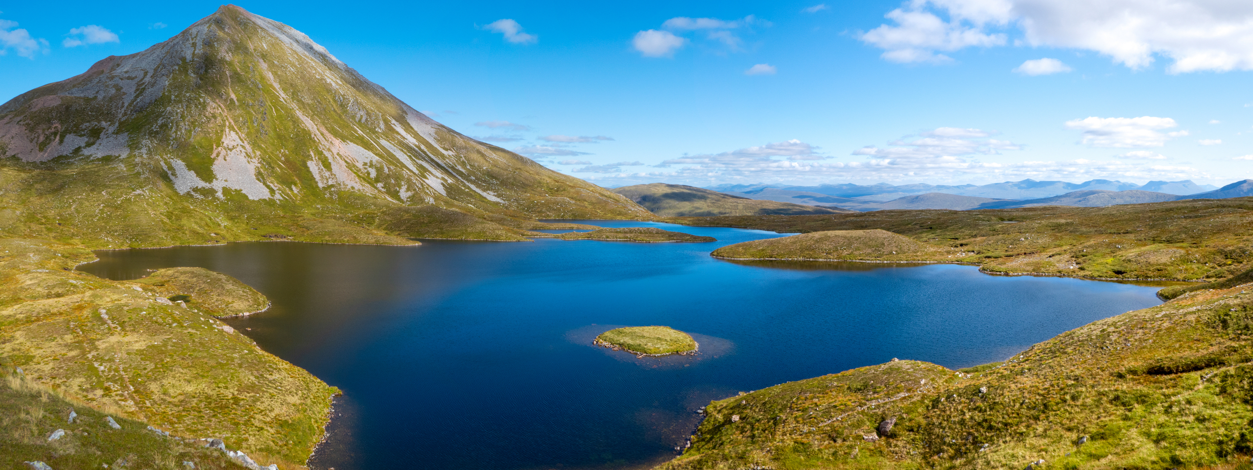 In de Highlands van Schotland vormen de munro's (bergen van minstens 914 m.) en bergmeertjes een prachtig decor.