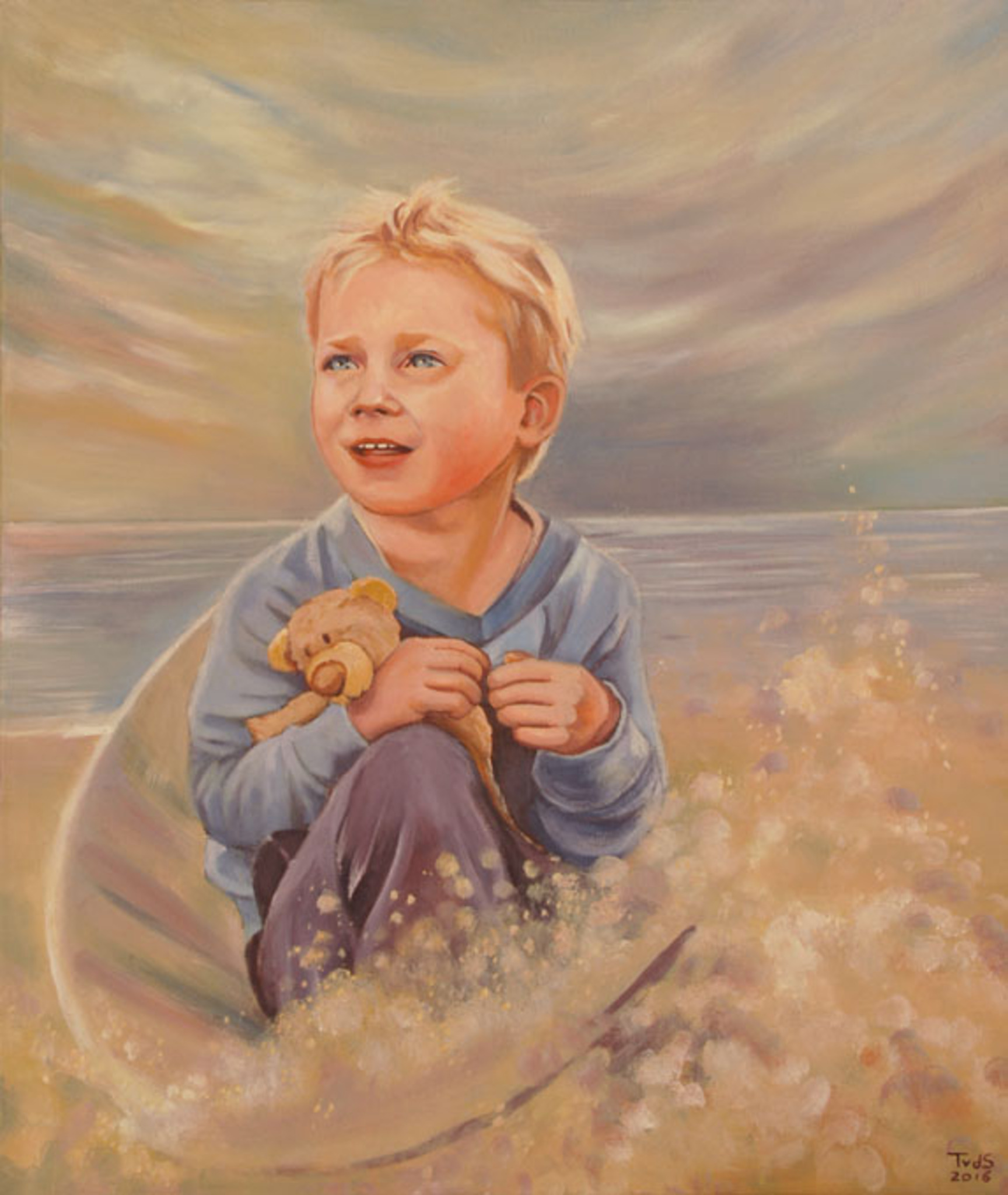Portret Olieverf Olieverfportret Jongetje Strand Zee