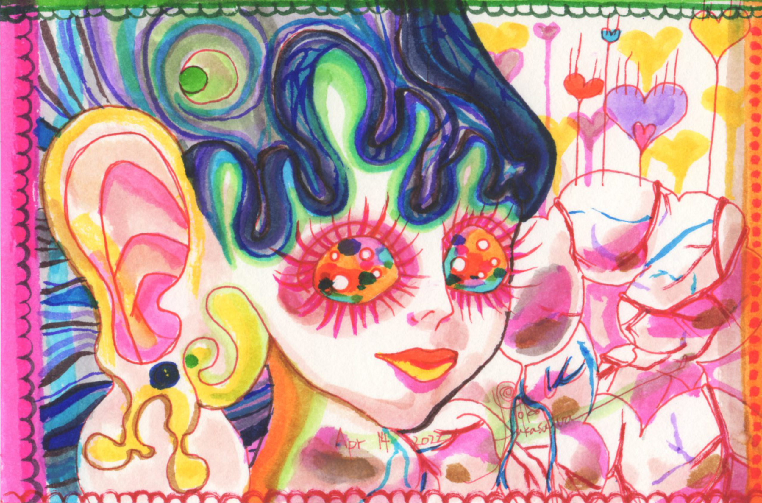 Yoko Fukasawa was born in 1982. 2001-Japan traditional craft department,Metal crafts major 2001-Volkswagen new Beetle - art contest The third place. 2002-TOKYO DOME - Tableware festival Fine work. 2017-And Schizophrenia has been revealed. Her paintings are outsider art. They are characterized by simple shapes and bright colors. She wants you to look at them and relax.