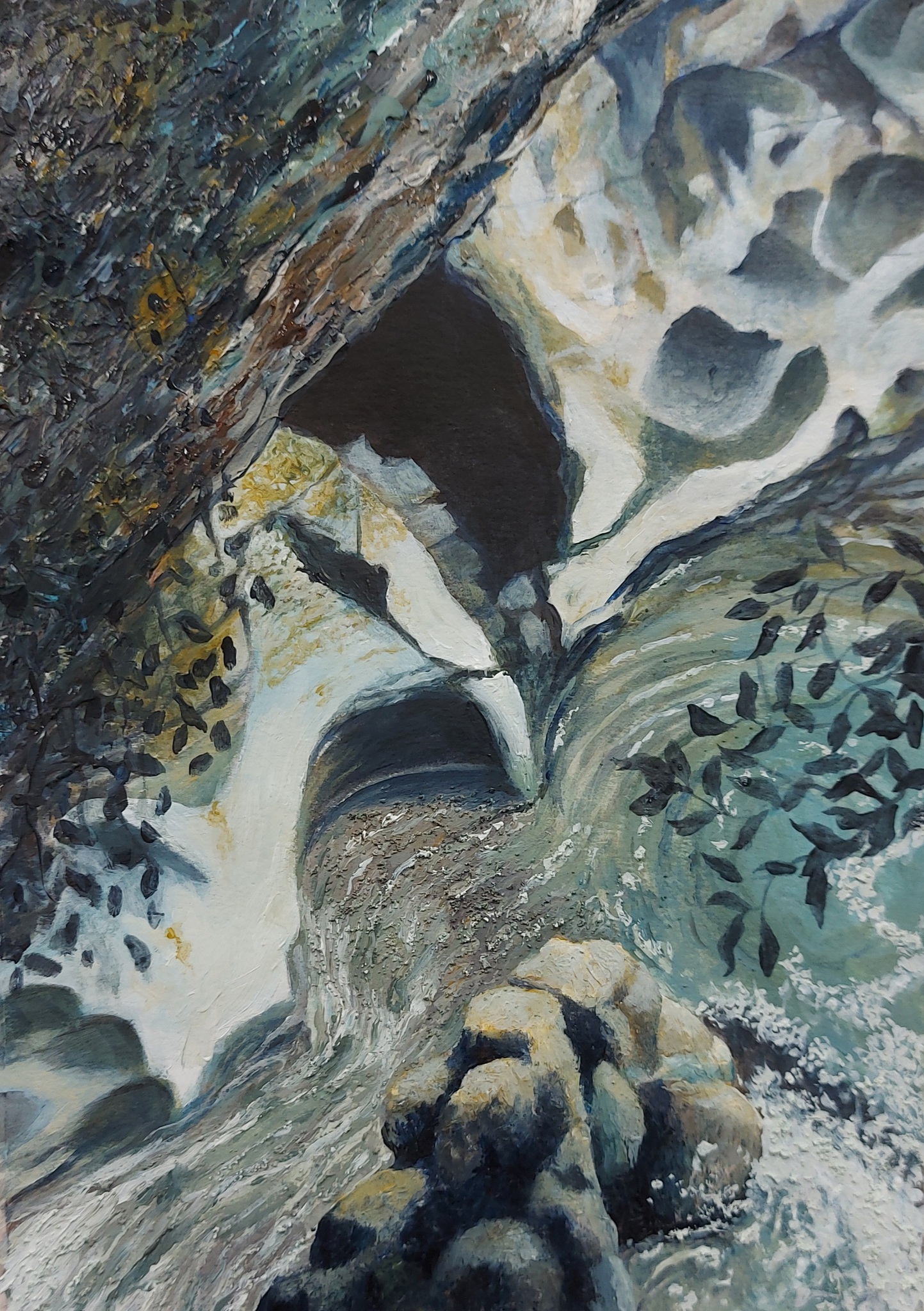 Schilderij Modern Acryl Water Mixed Media Natuur Bergen Painting Realisme Zand Rotsen Nature River Alpen Keien Rocks Moutain Kunsttekoop Bedrock