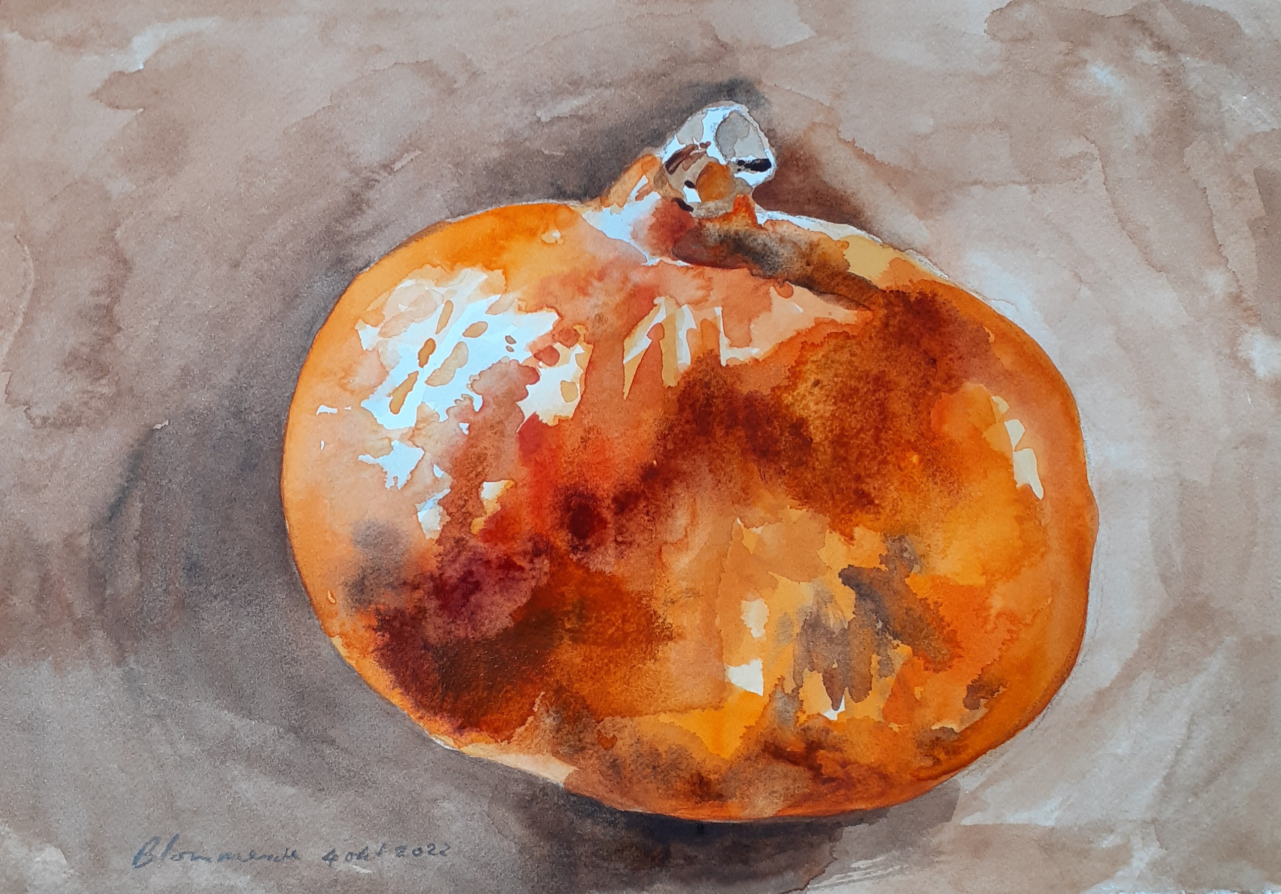 Aquarel van een pompoen