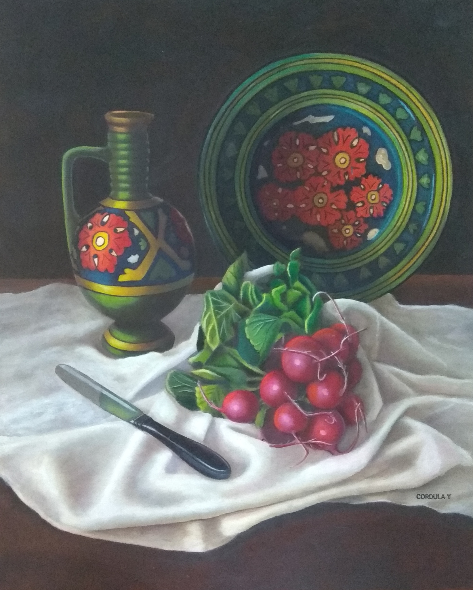 Mijn naam is Cordula en ik woon in Gorinchem. Mijn leven lang creatief bezig geweest en uiteindelijk mijn passie gevonden in schilderen met olieverf. Stillevens en cultuur hebben mijn voorkeur.
