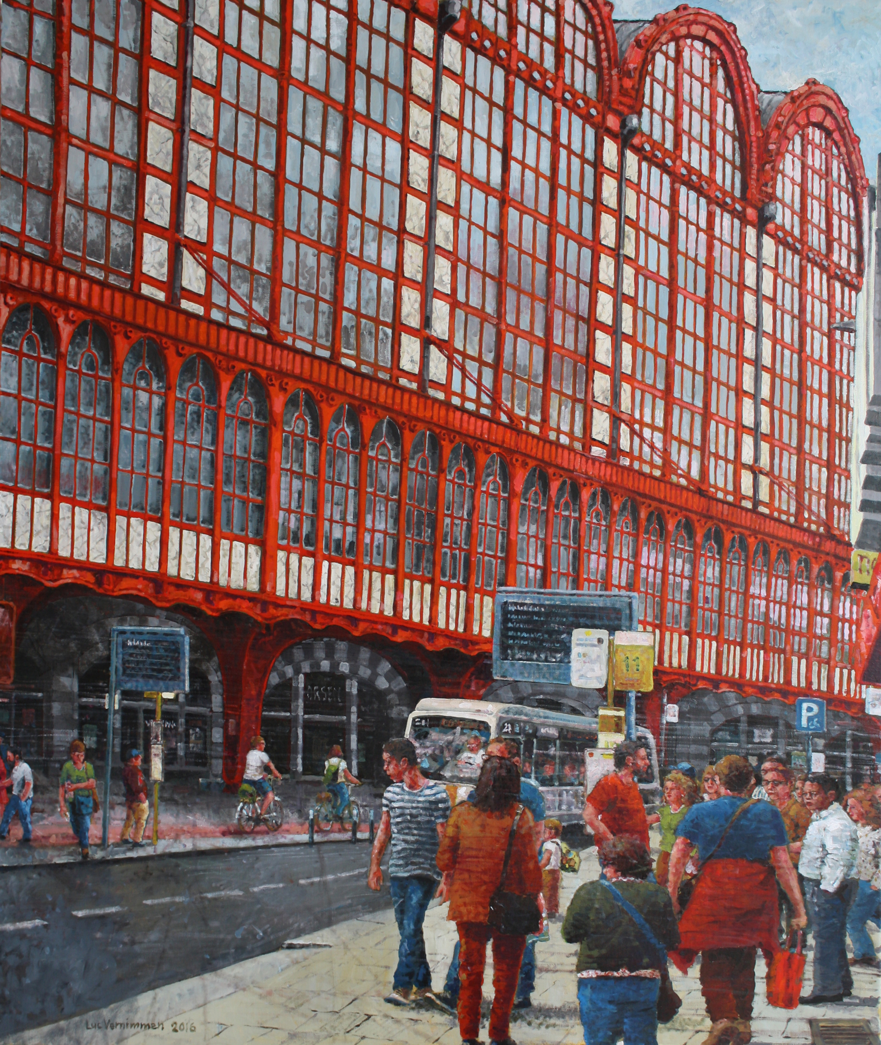 Station Mensen Straat Stad Antwerpen Trein Olie