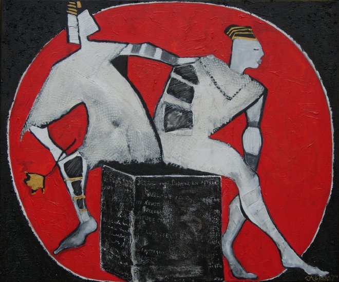 Eerste uit een serie van tien schilderijen, die geïnspireerd zijn op het beeld 'Daphne & Apollo' van het kunstenaarsduo Frans en Truus van der Veld.