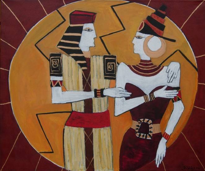 Achtste uit een serie van tien schilderijen, die geïnspireerd zijn op het beeld 'Daphne & Apollo' van het kunstenaarsduo Frans en Truus van der Veld.