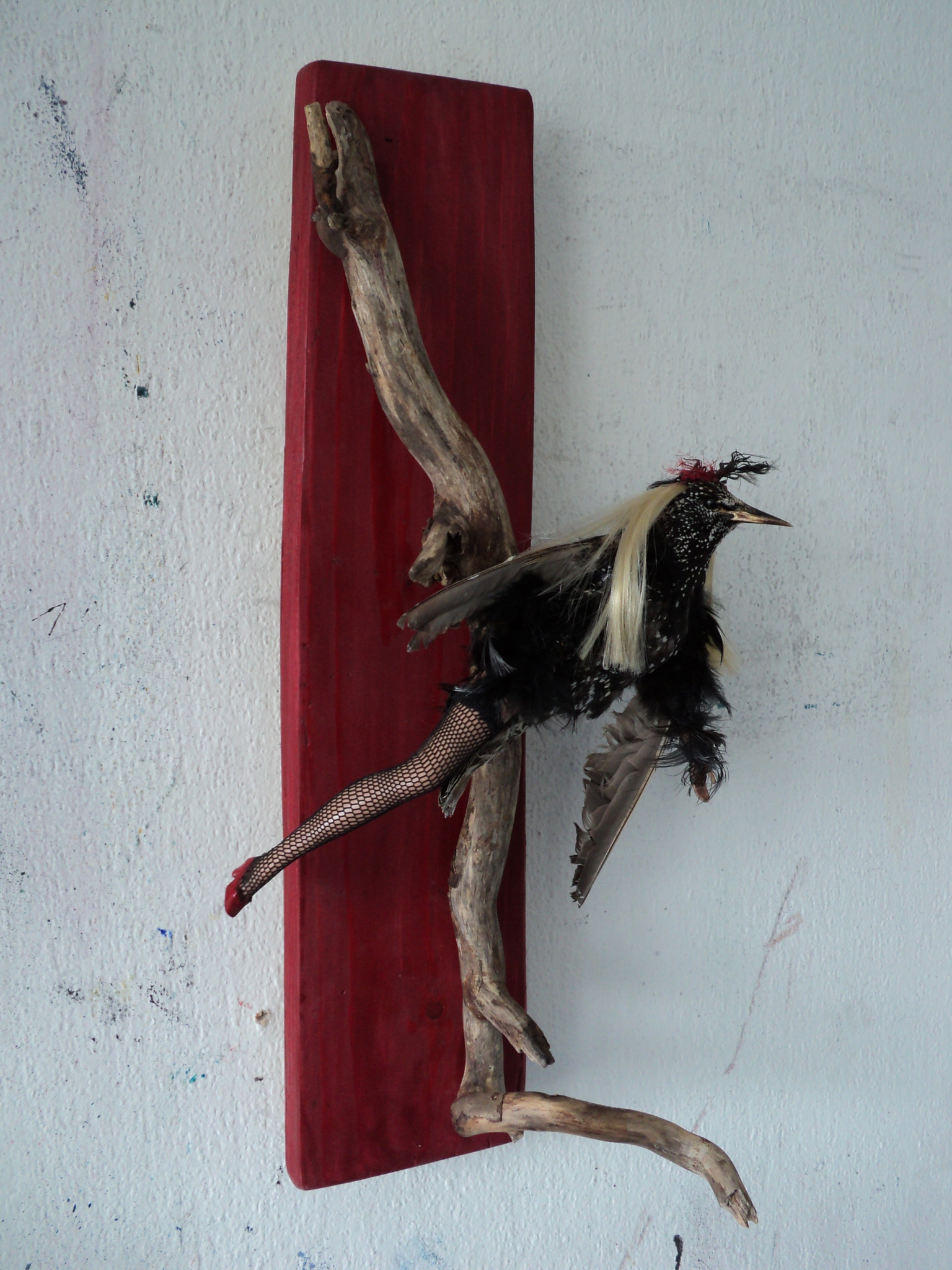 mixed media met opgezette merel