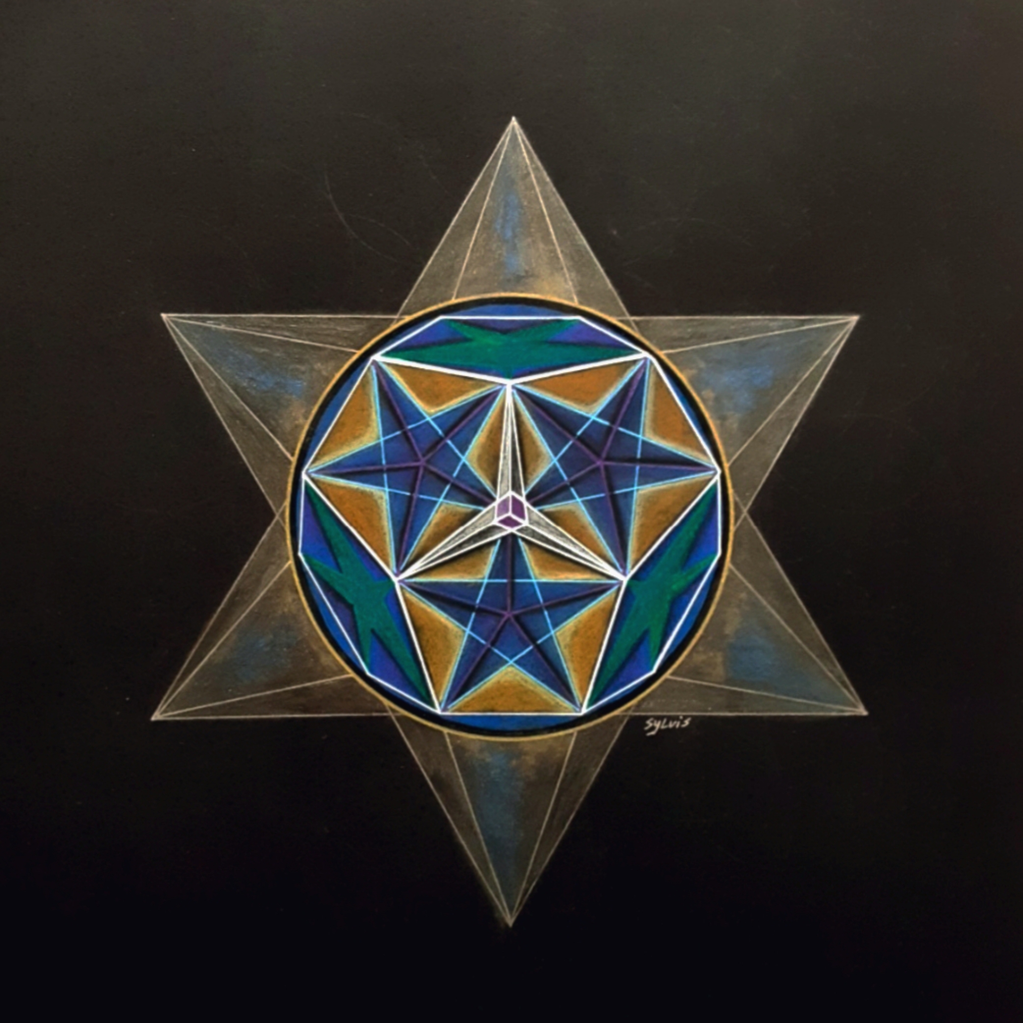 Fineliner, pastelpotlood, gekleurd poeder, zilver- en goudpoeder