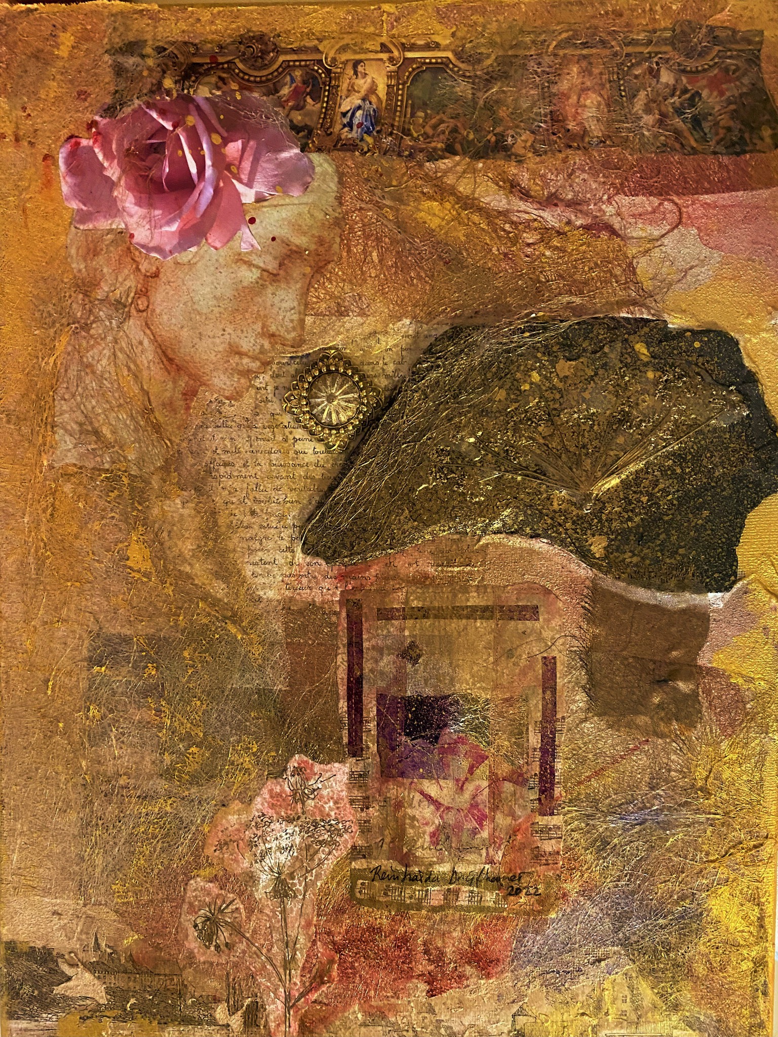 Art Mixed Media Collage Paper Assemblage Poetry Alhambra Goldleaf Handmade Andalucia Watercolors Monuments Decorations Panels Rich Wealth Experimental Visuel Richesse