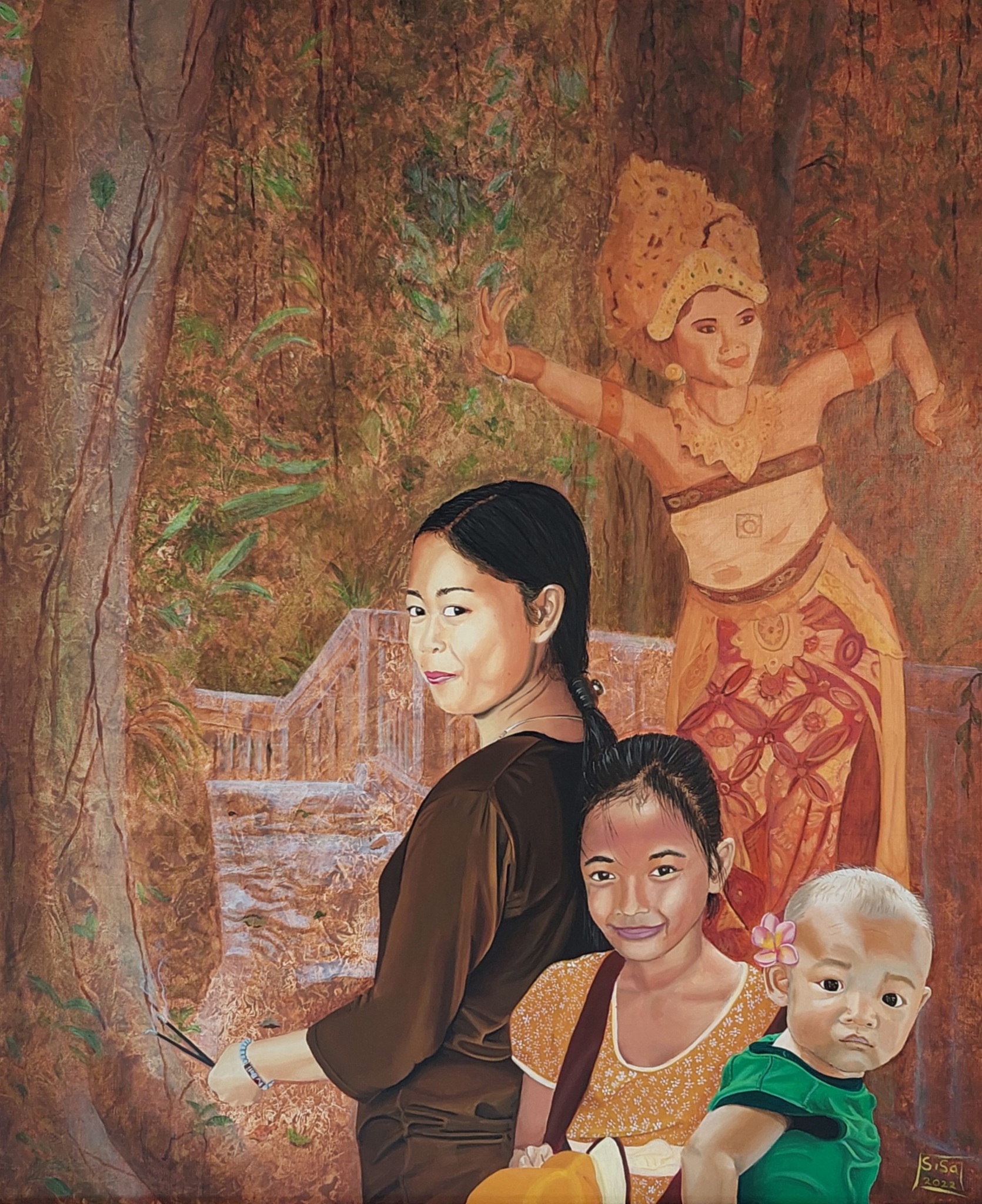 Een aantal jonge Balinese mensen zijn in dit schilderij geportretteerd.  Op de achtergrond is de prachtige Balinese omgeving afgebeeld.