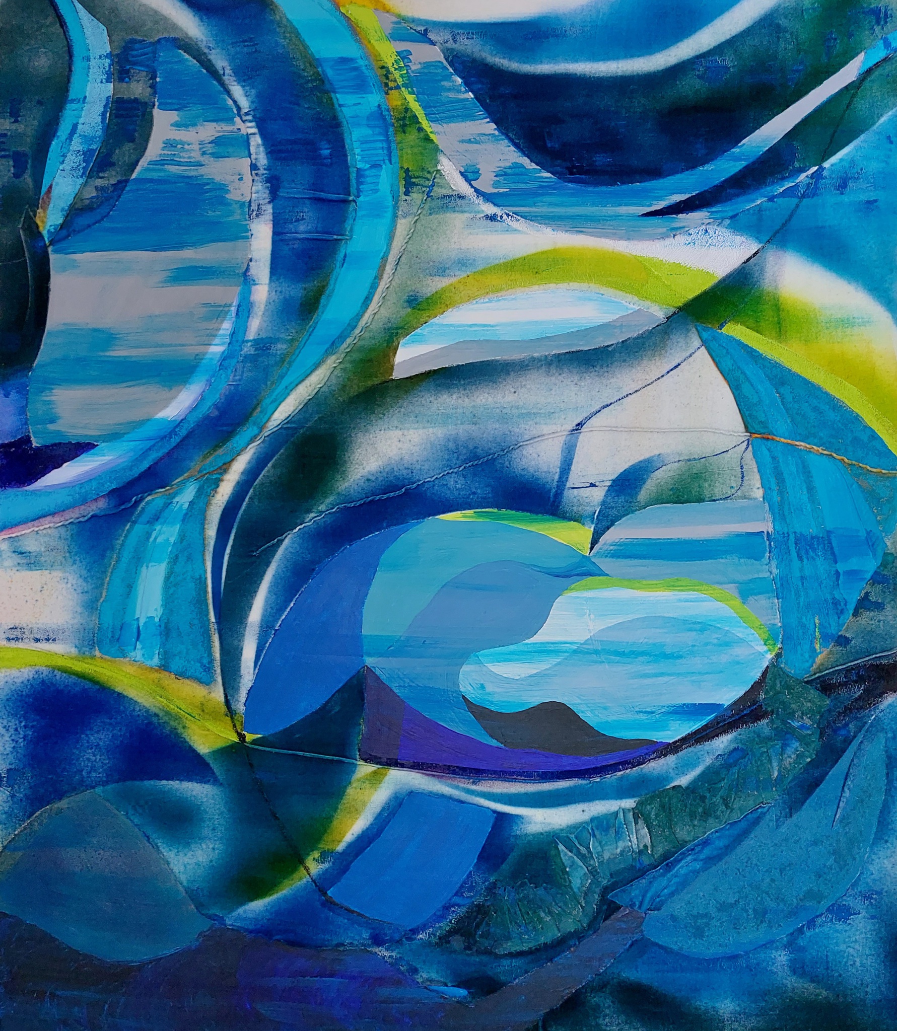 Het werk is geschilderd op zijdefluweel met zijdeverf en acryl.
