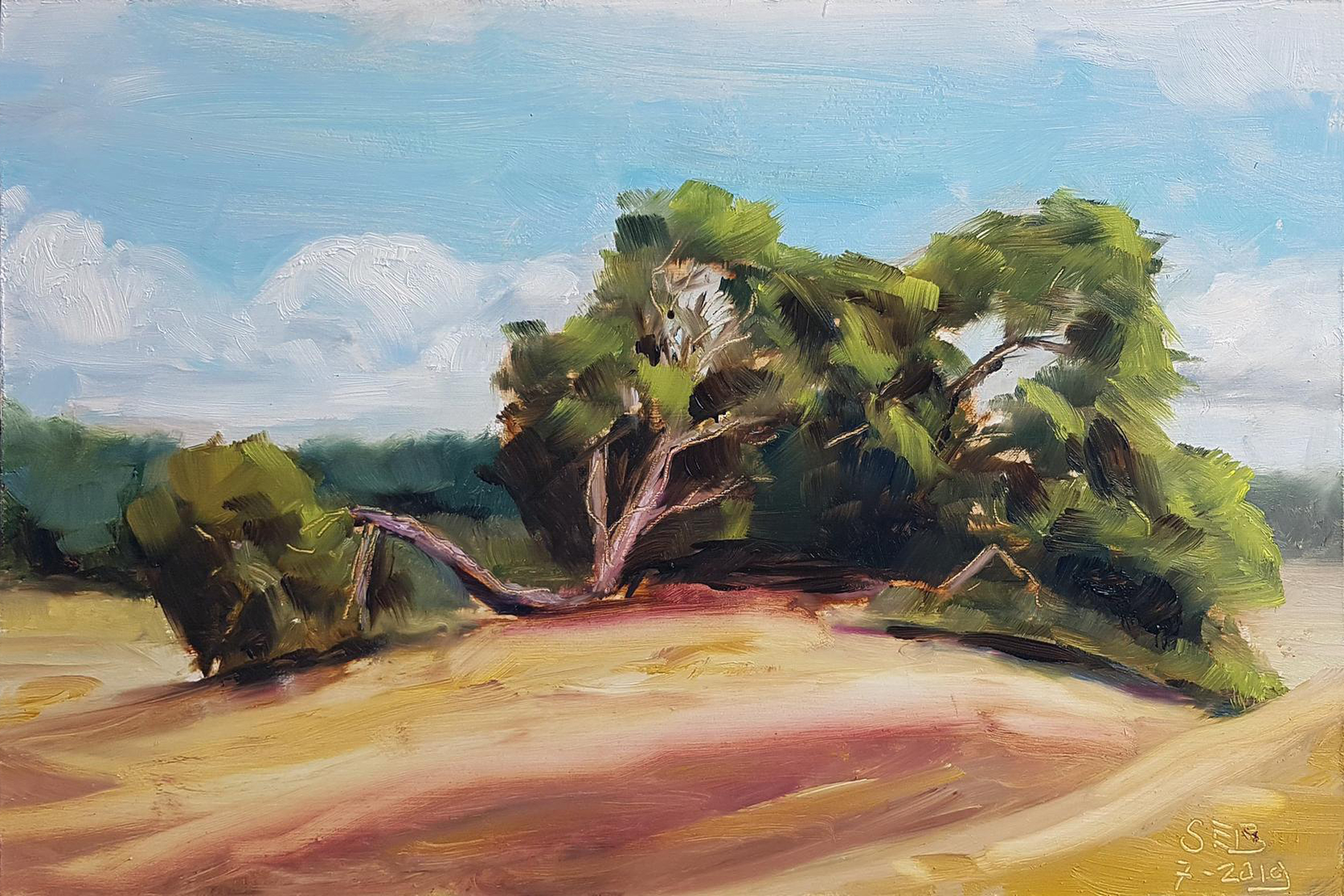 Landschap Olieverf Natuur Bomen Lucht Zand Enpleinair