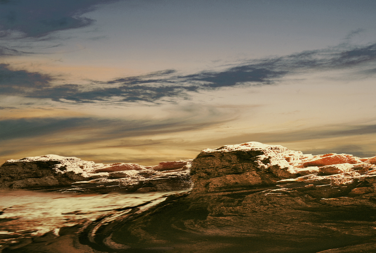 Combinatiebeeld gebaseerd op een futuristich landschap in een ander licht.