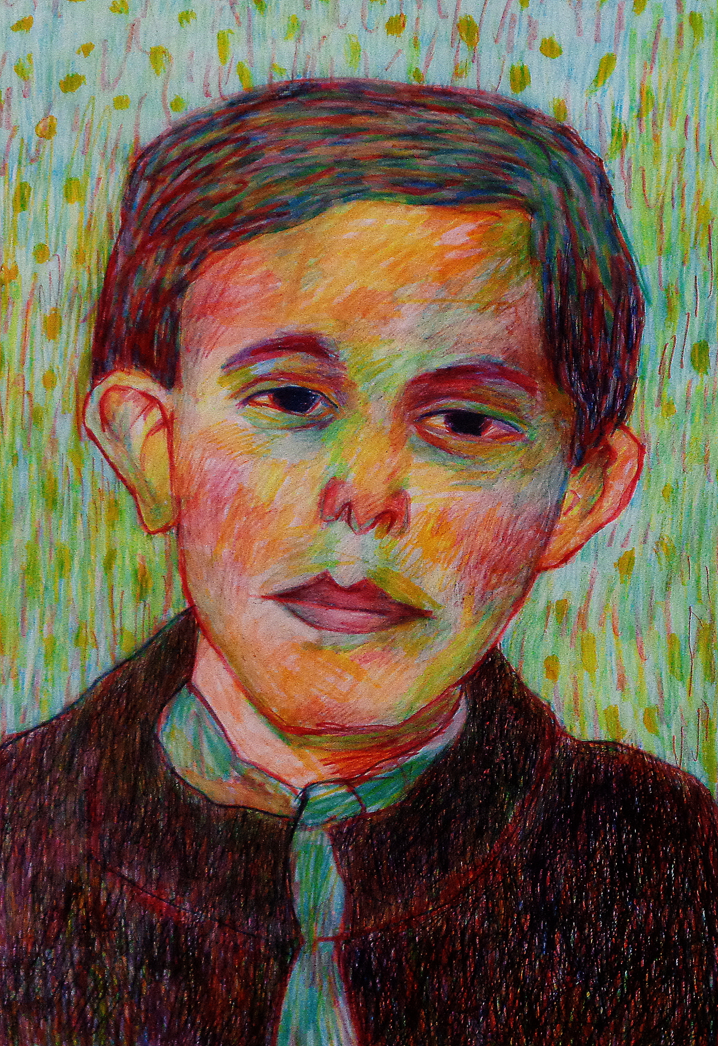 Vrij werk in ballpoint stift en kleurpotlood
