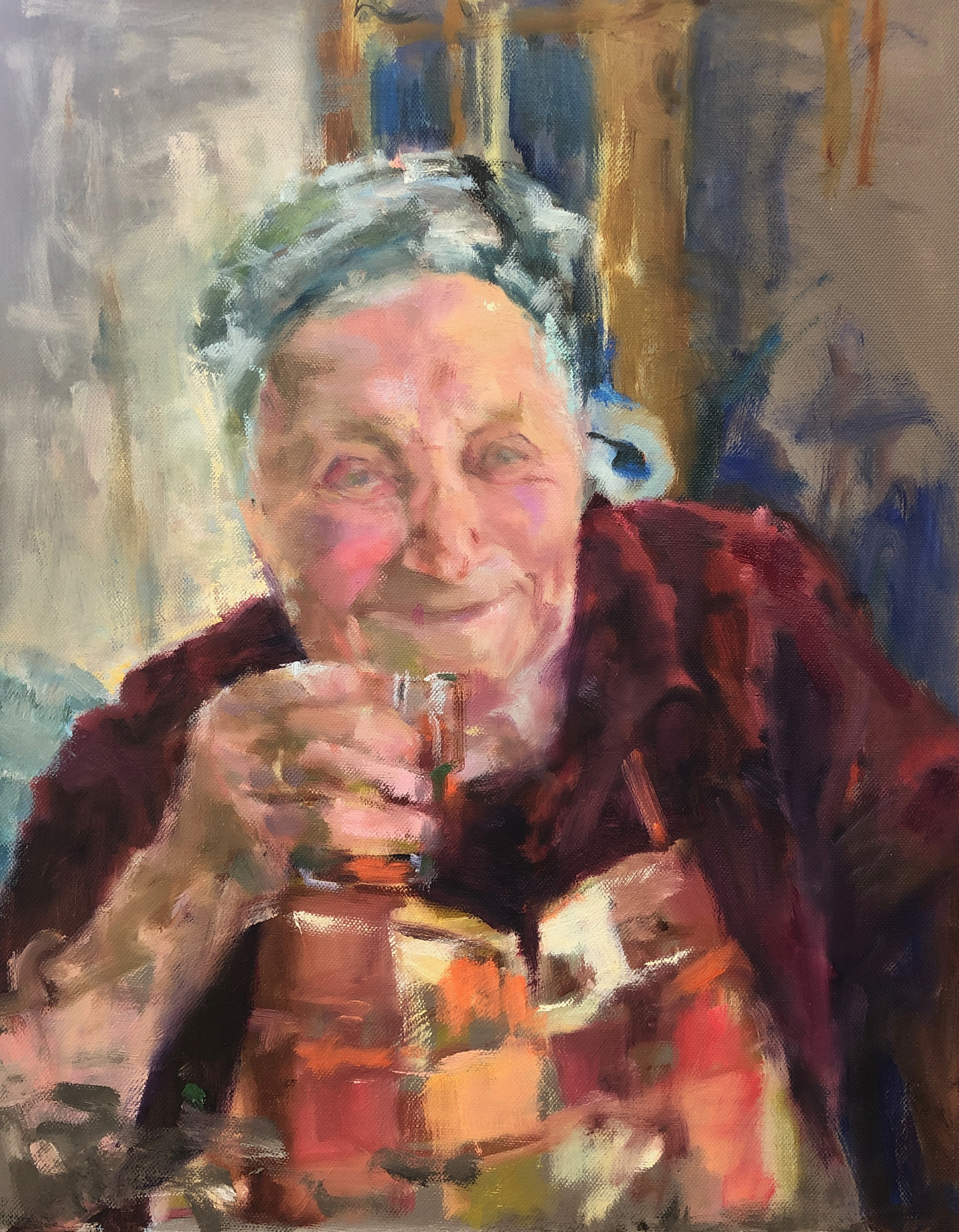 Oude Italiaanse dame geniet van het leven.
