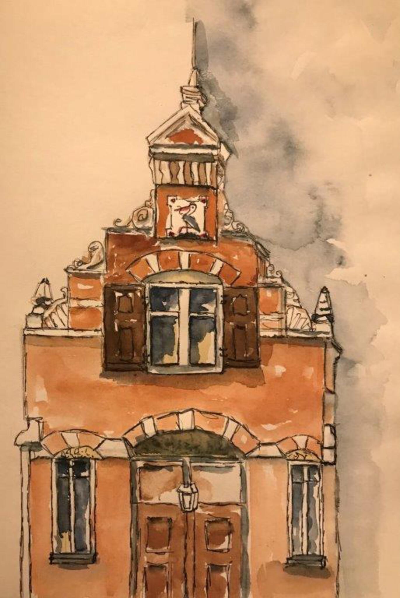 Fake house Aquarel fineliner urban sketch